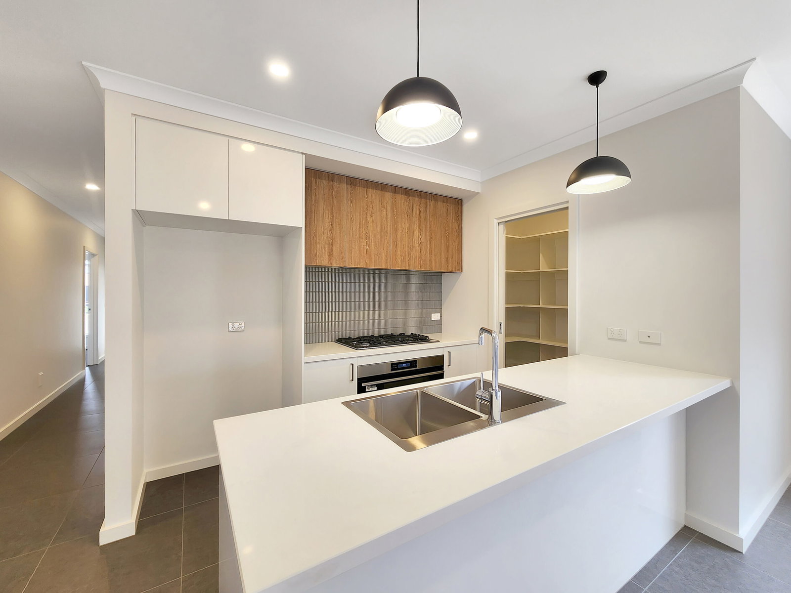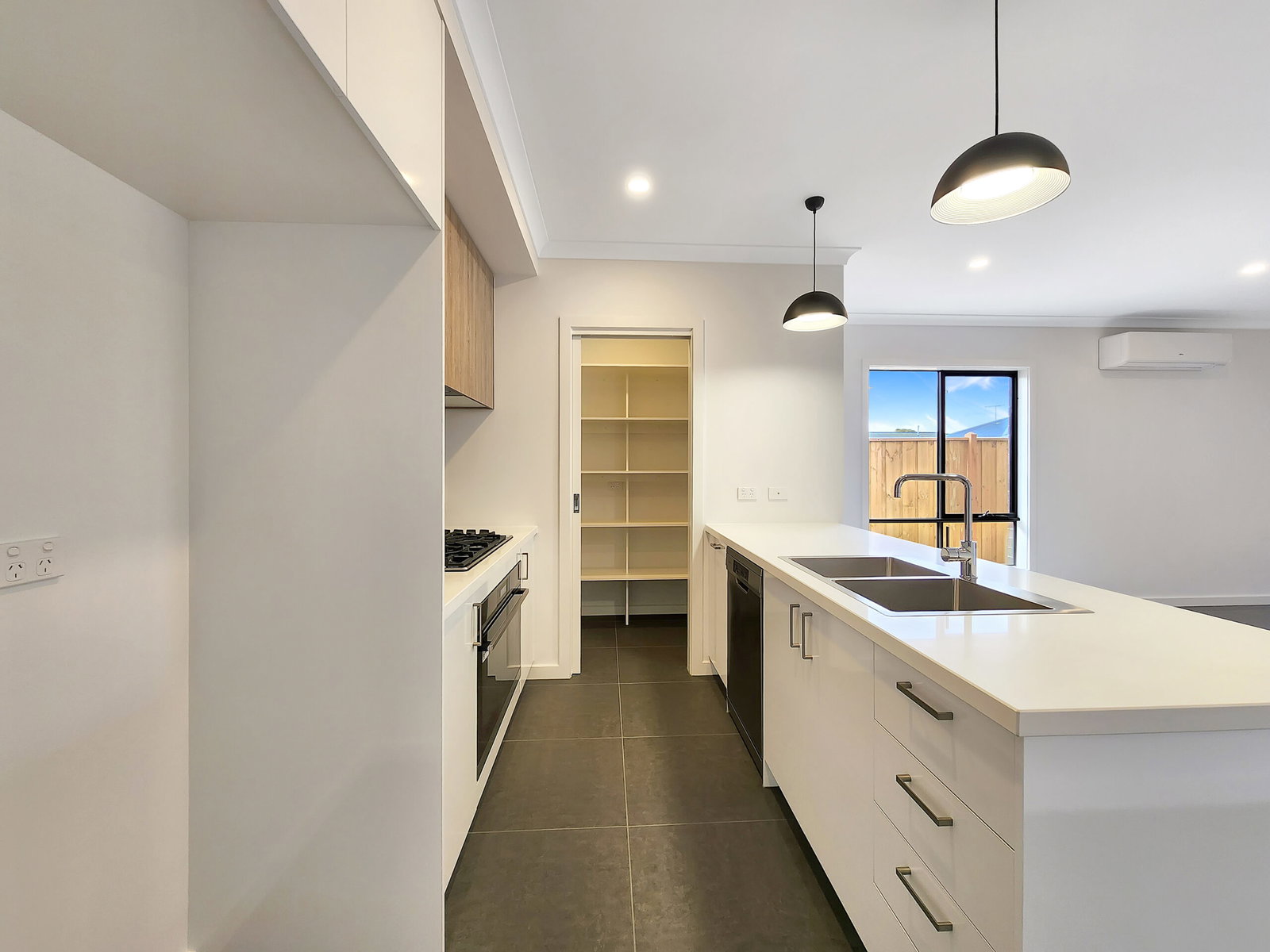 – Kitchen including quality appliances, 5 burner gas cooktop, 900mm oven, dishwasher, plenty of cupboard space, stone bench tops and spacious walk in pantry