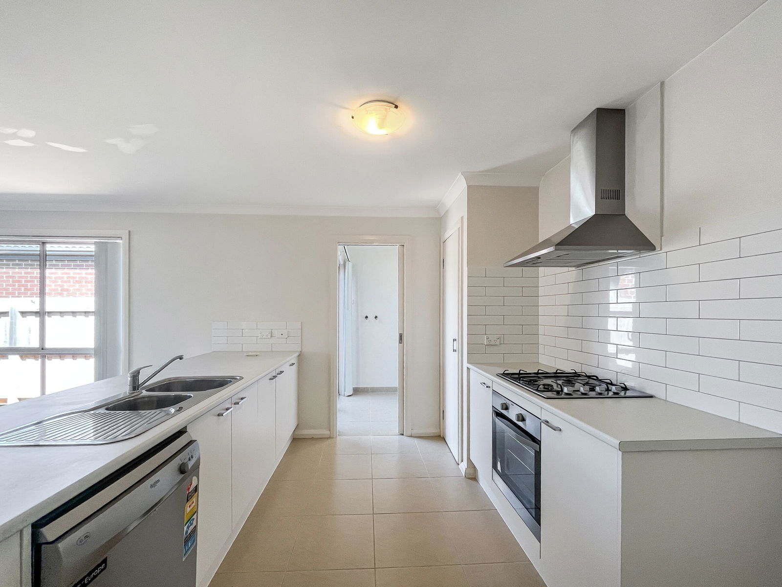 – Kitchen with tiled splash-back, plenty of cupboards, built-in pantry, 600mm stainless steel oven, 4 burner gas cook-top and dishwasher