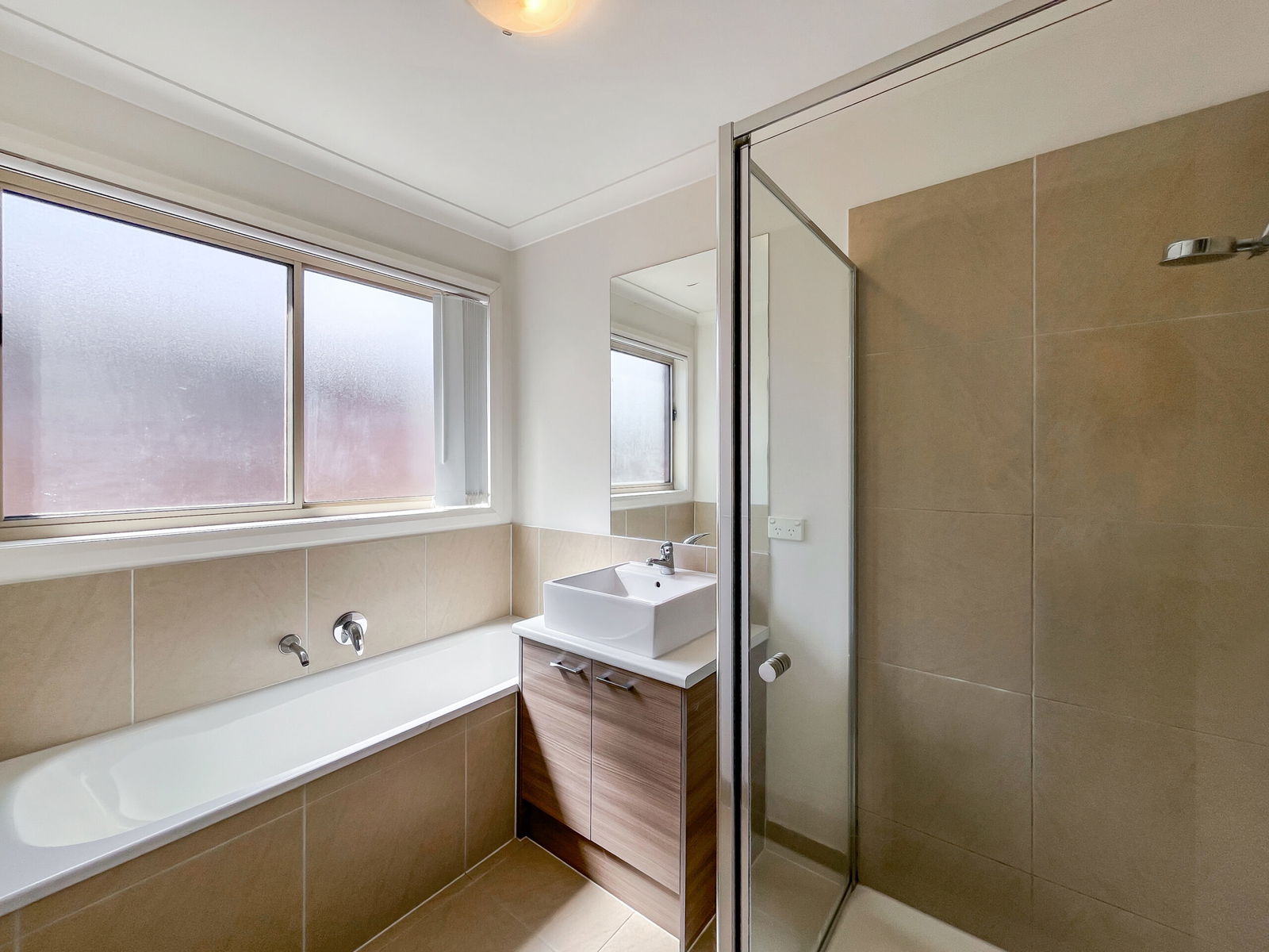 – Main bathroom with a built-in bath, shower and vanity, as well as separate toilet