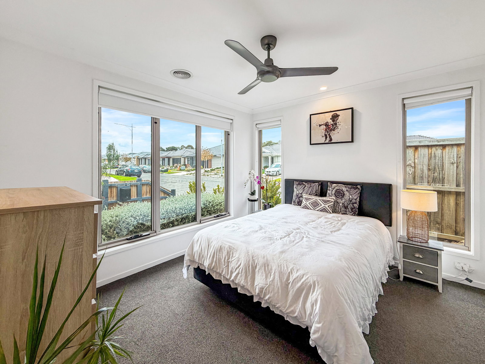 – Split system in the open plan area and ducted heating and ceiling fans throughout the home