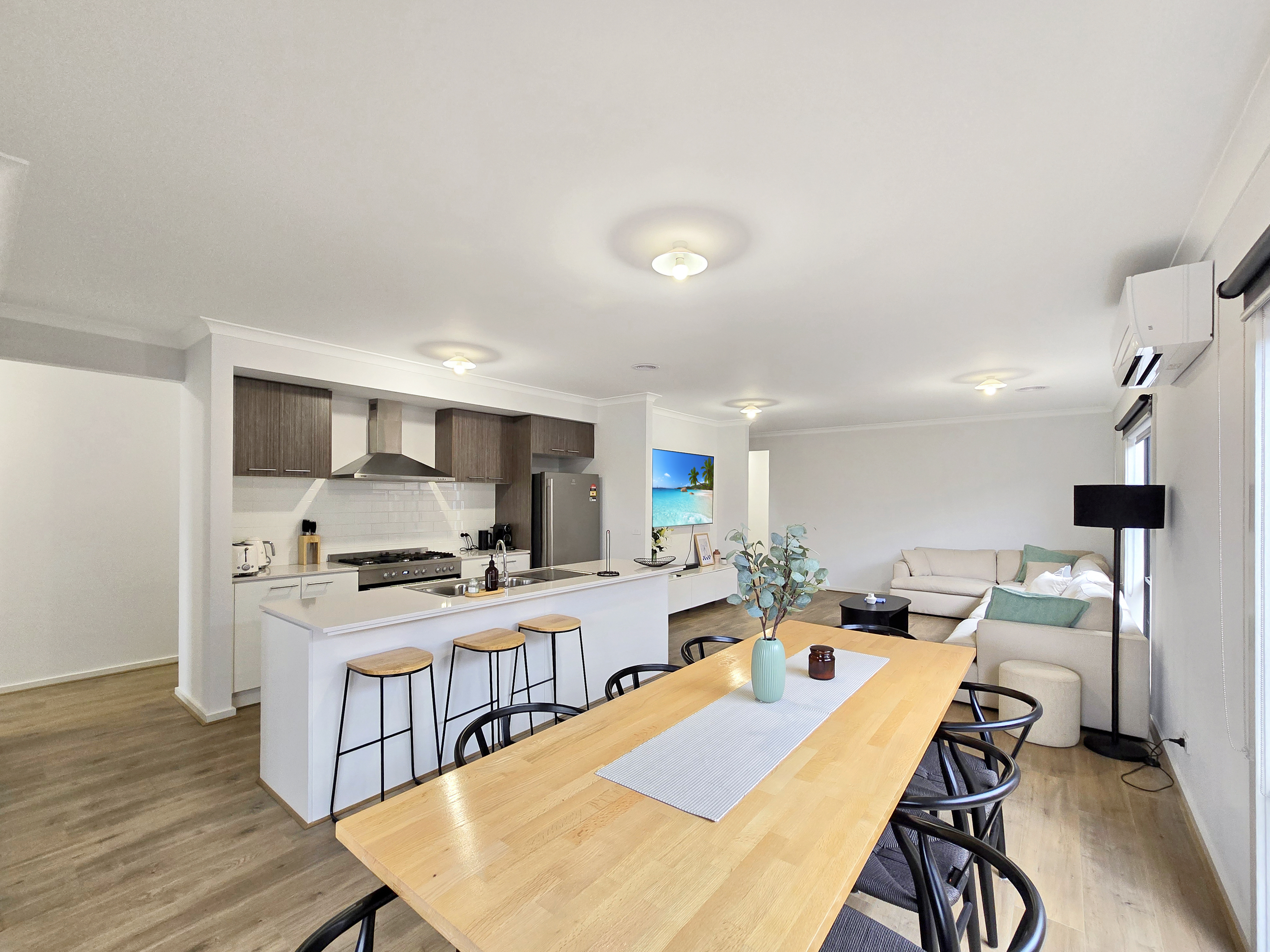 – Open plan kitchen, living and dining area