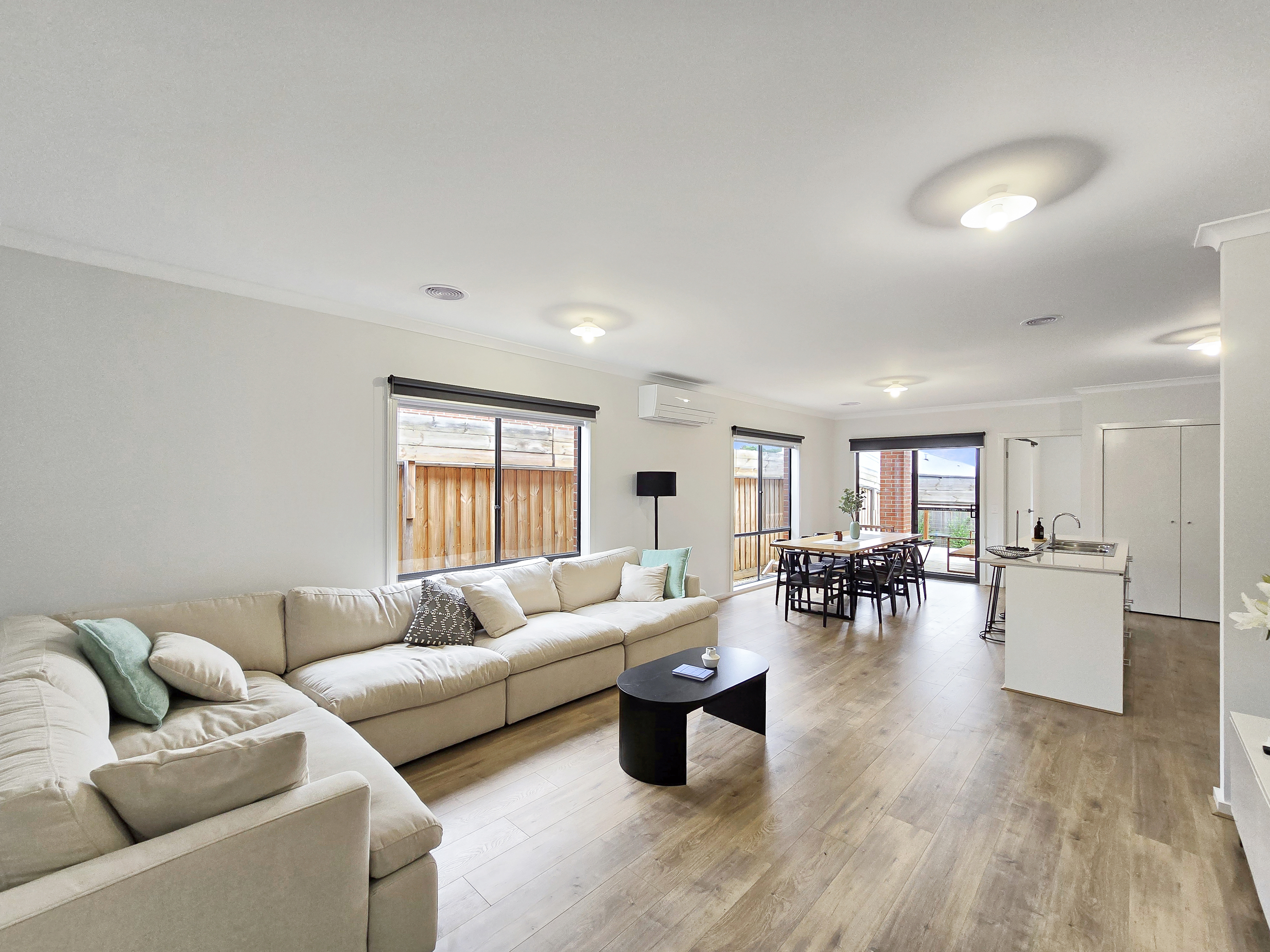 – Ducted heating throughout and split system unit in the open plan