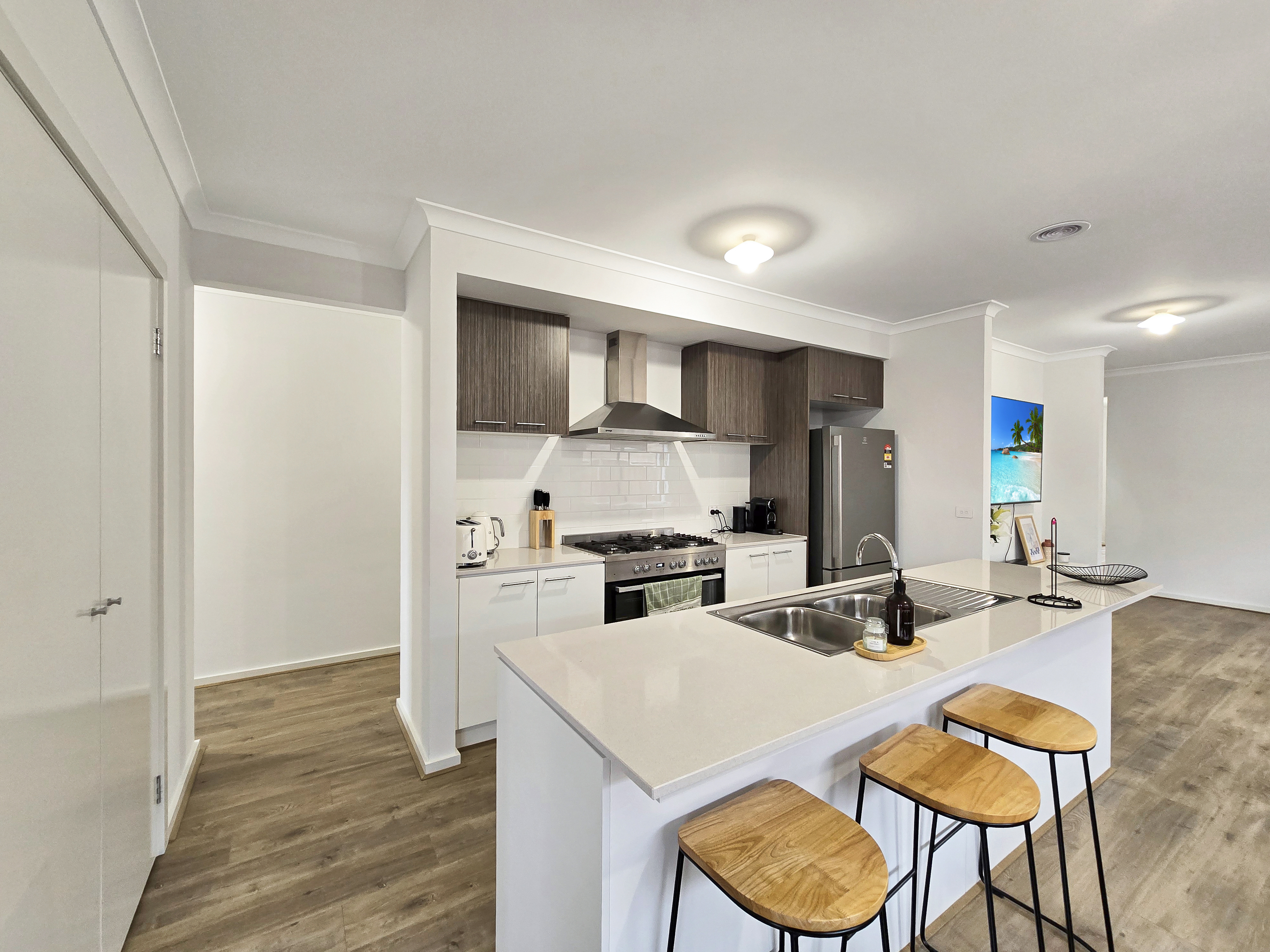 – Entertaining can spill out through the open living and dining zone to the undercover alfresco and timber deck