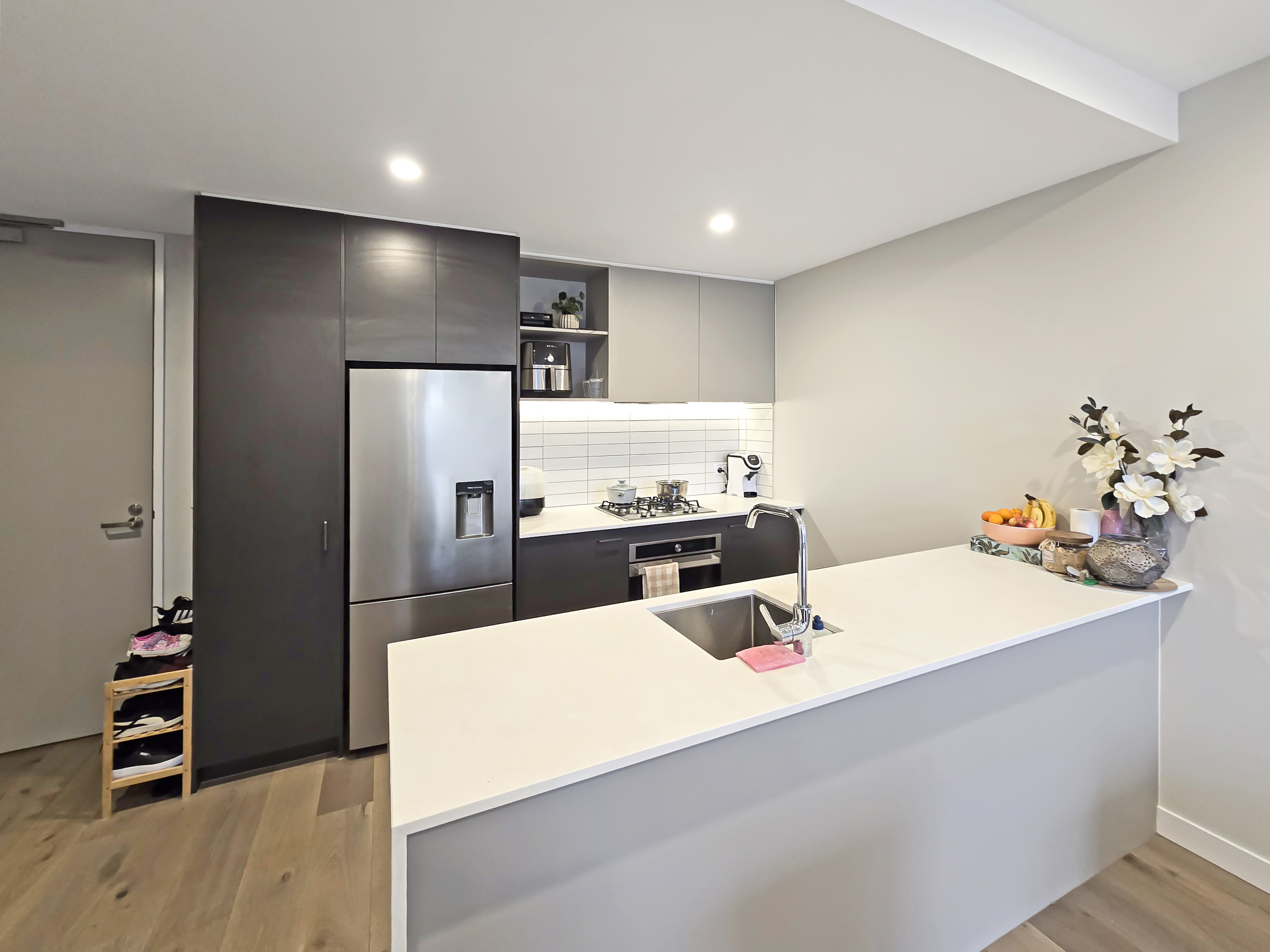 The apartment features a spacious living area, perfect for relaxing or entertaining guests. The well-appointed kitchen comes equipped with sleek cabinetry, stone benchtops, and stainless steel appliances. With a private balcony, you can enjoy alfresco dining while taking in the scenic views.