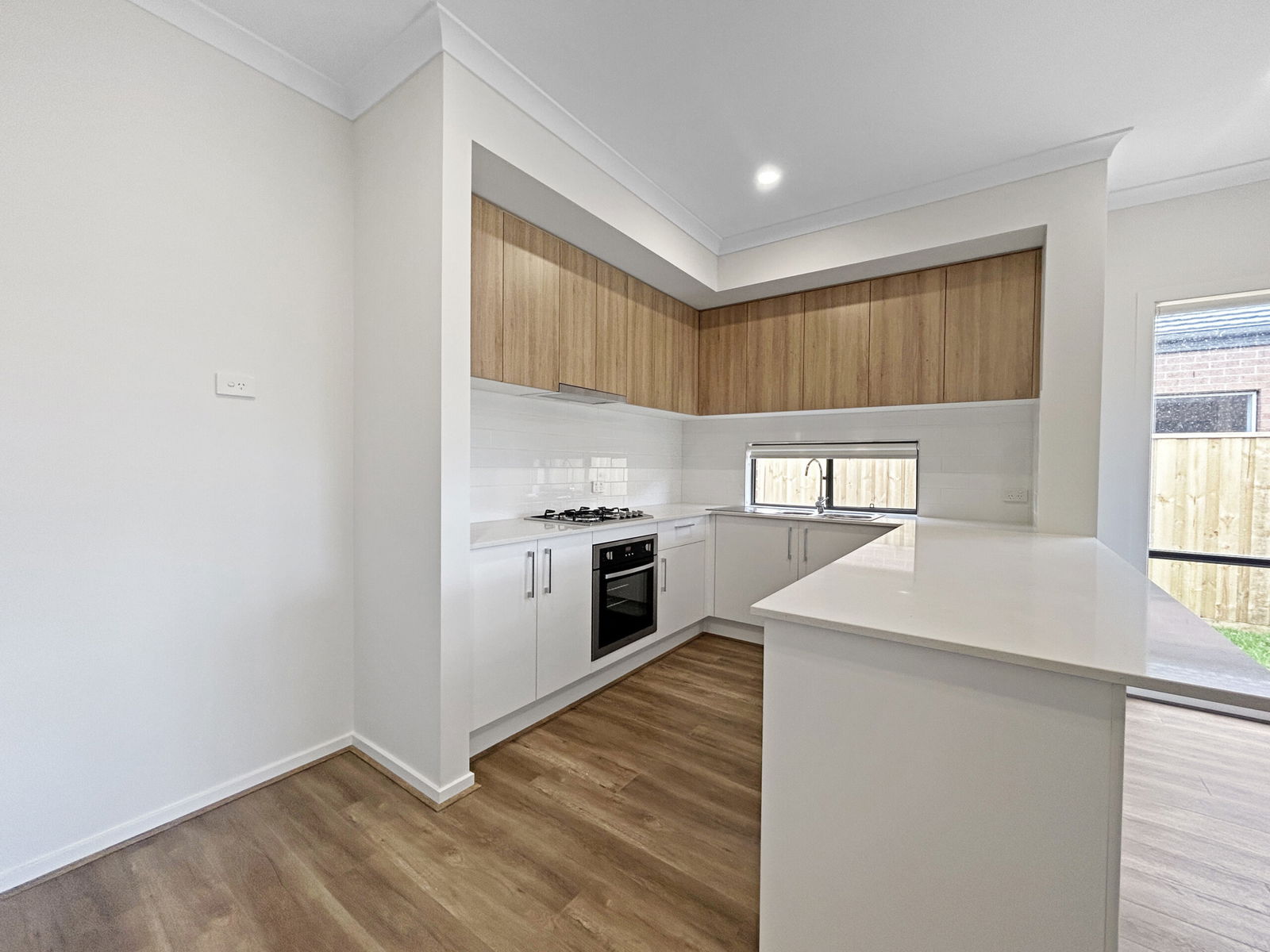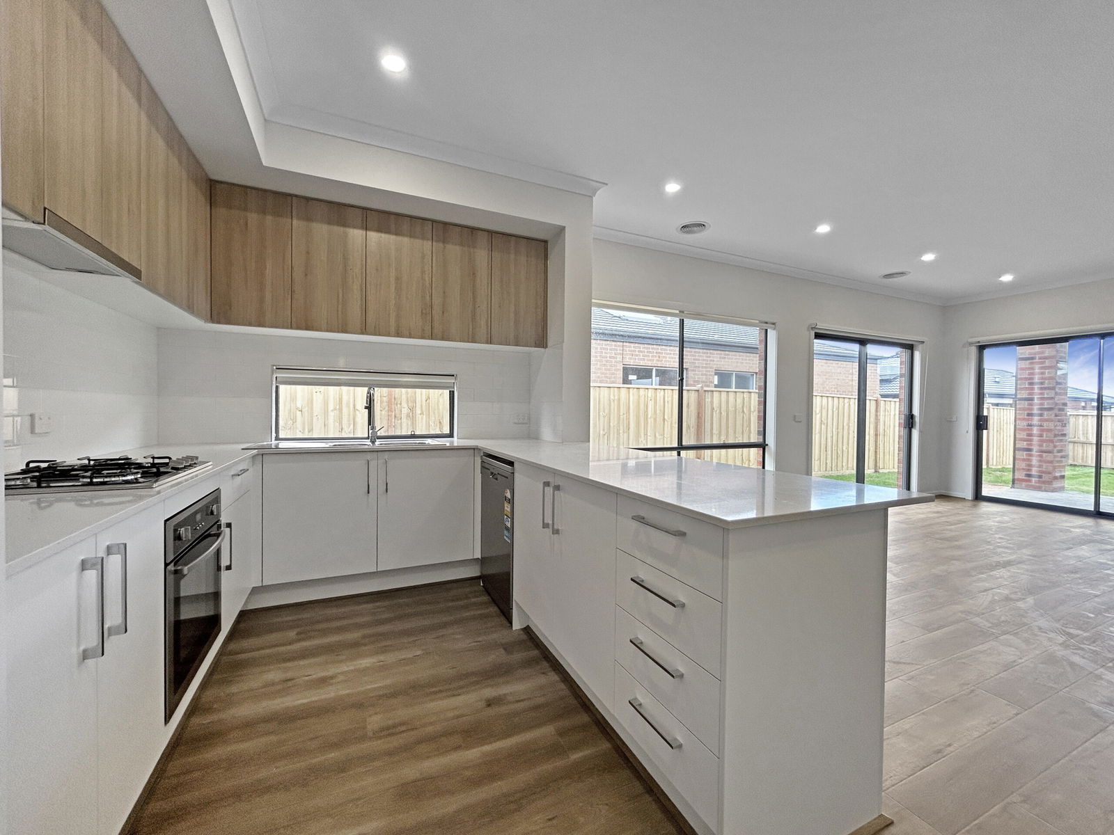 – Kitchen with 4 burner gas stove top, 600mm electric oven, dishwasher, stone bench tops, window splash back and a built-in pantry