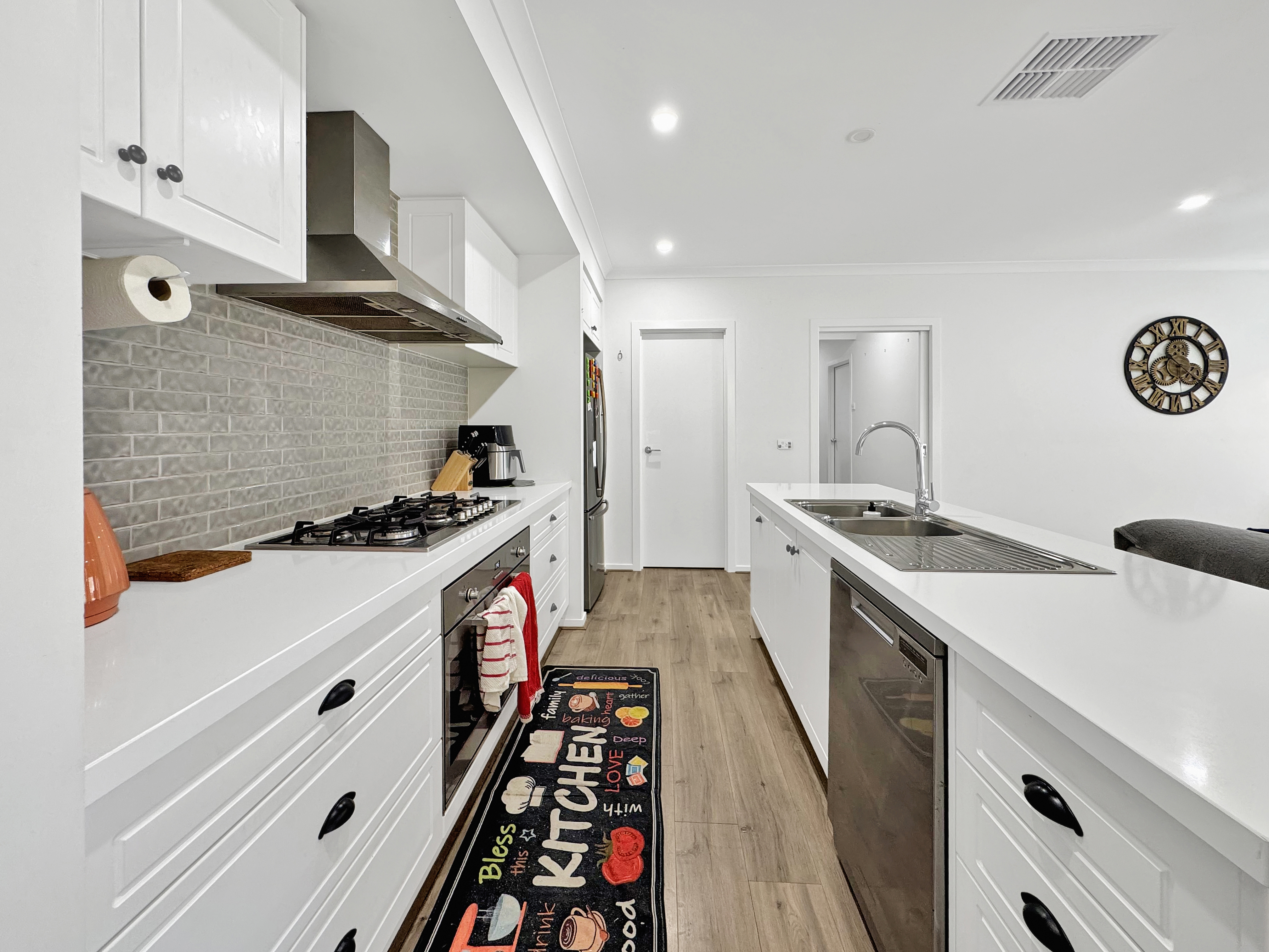 Mod cons – Laundry with trough and a extended bench, ducted heating system, evaporative cooling,, double car lockup garage with extra workshop space and internal and external access, Opticomm access, linen press, high ceilings, Hampton’s inspired kitchen, colourbond roof, double glazed windows throughout.