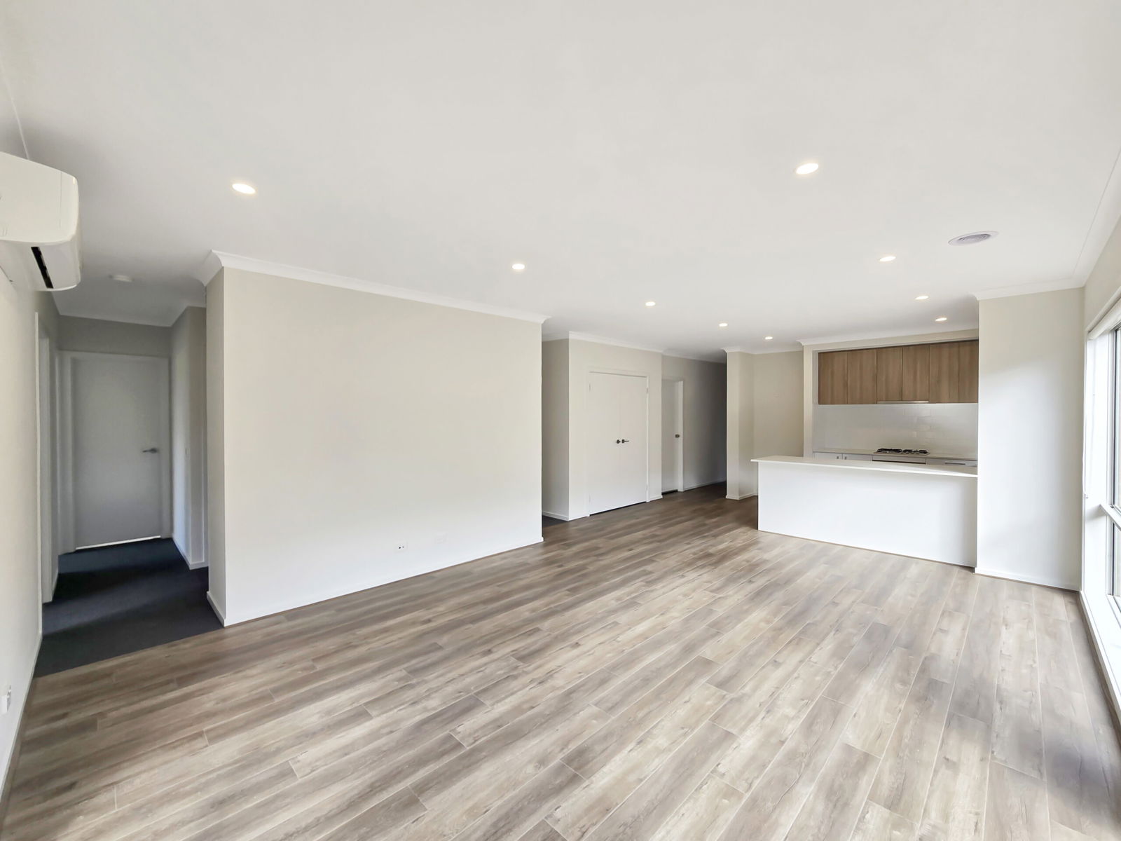 – Open plan kitchen, dining and living area with plenty of windows for sunlight and a split system unit