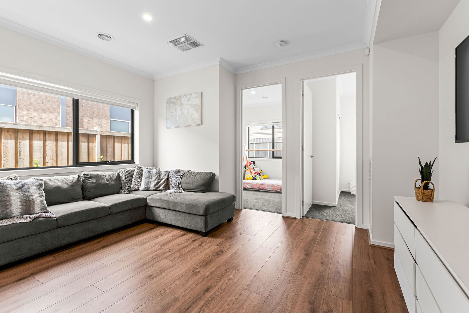 Additional Living Spaces: The home offers flexibility for families with multiple living zones perfect for a formal lounge, playroom or media room. Finished with hybrid timber-look flooring, downlights, ducted heating, evaporative cooling and double-glazed windows with blockout blinds, each space is light-filled and adaptable to your needs.