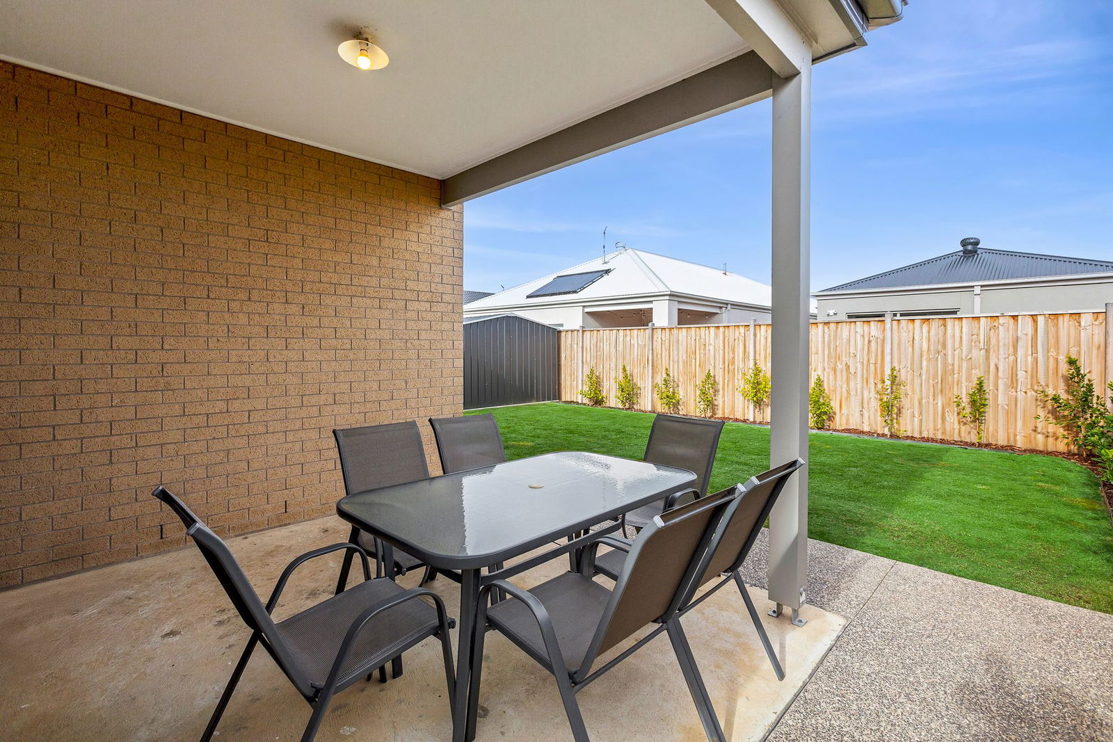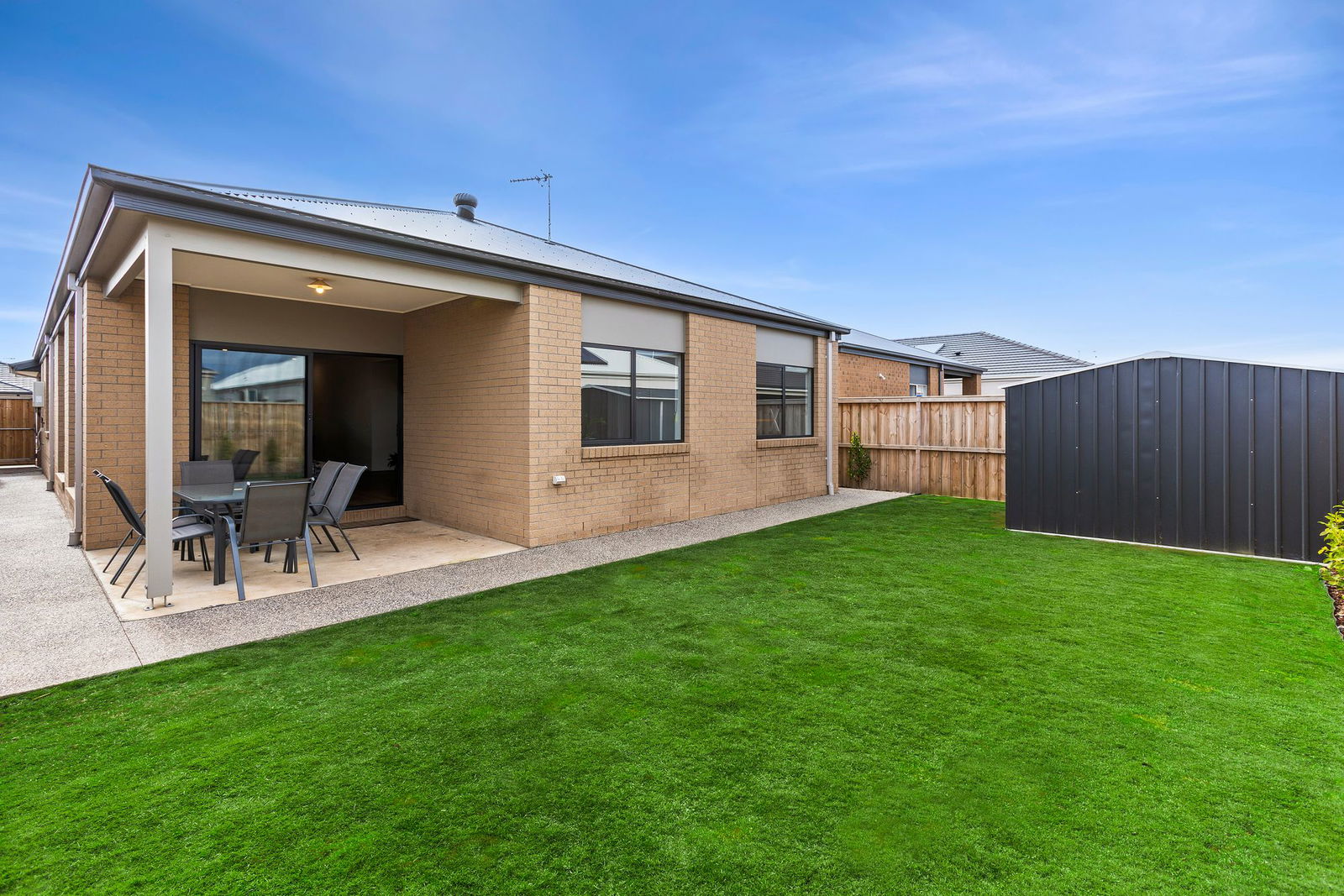 Outdoor: The front of the home welcomes you with low-maintenance gardens, an exposed aggregate driveway and paths, a profiled garage door with high entry, Colourbond roof and security door. The rear yard offers an undercover concrete alfresco area, exposed aggregate pathing, lush green lawn, established garden beds with trees and plants, and a 3m x 3m garden shed — providing ample room for outdoor entertaining, everyday enjoyment and storage.