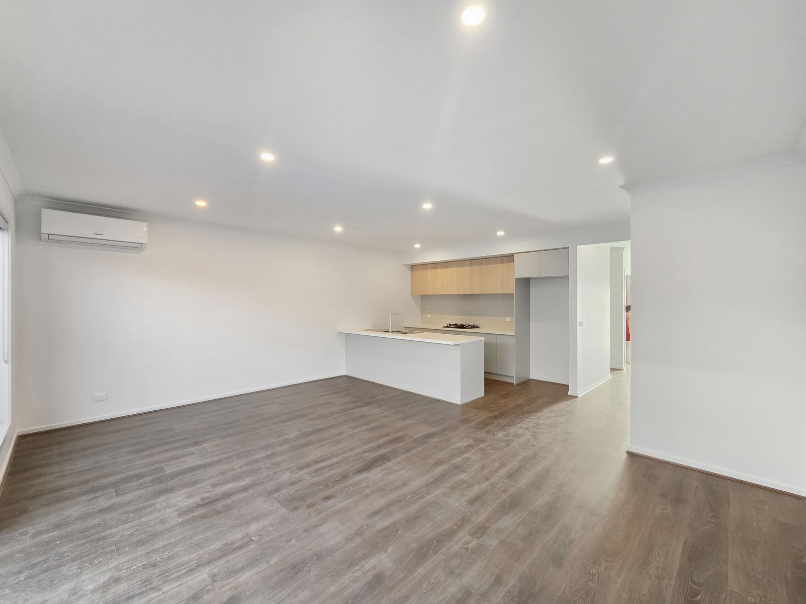 – Open plan kitchen, living and dining area located on the ground floor with plenty of natural light and a split system unit