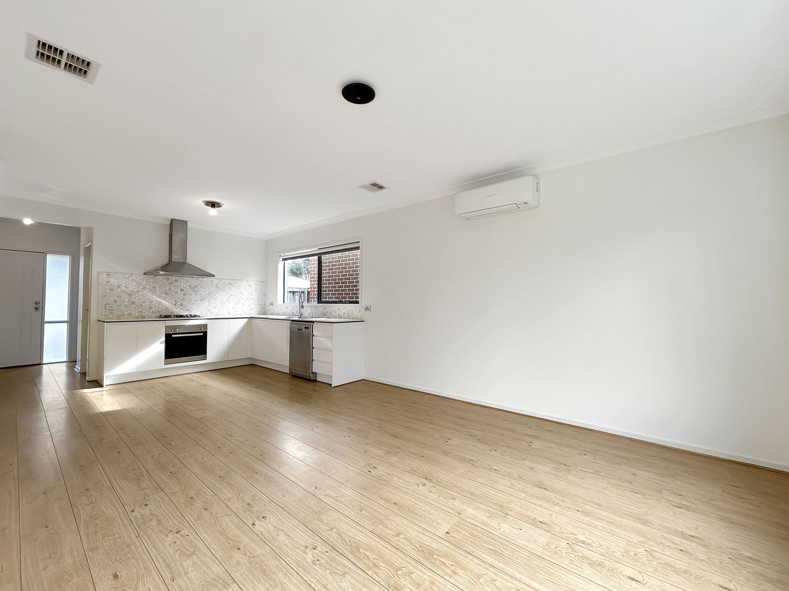 – Large open plan living and dining room with floorboards and split system heating and cooling