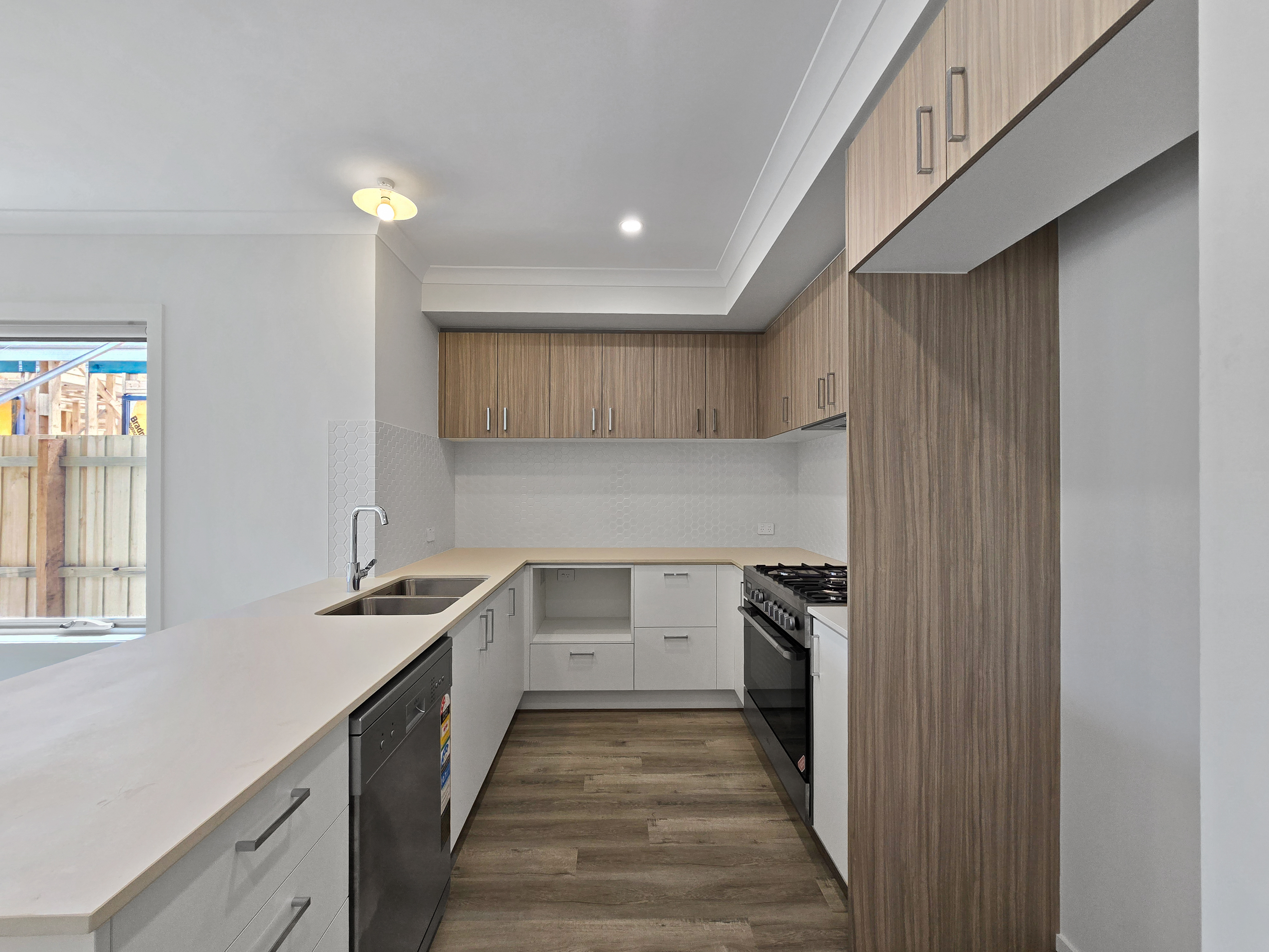 – Kitchen including 900mm stainless steel appliances, dishwasher, microwave cavity, feature tiled splashback and a built-in pantry