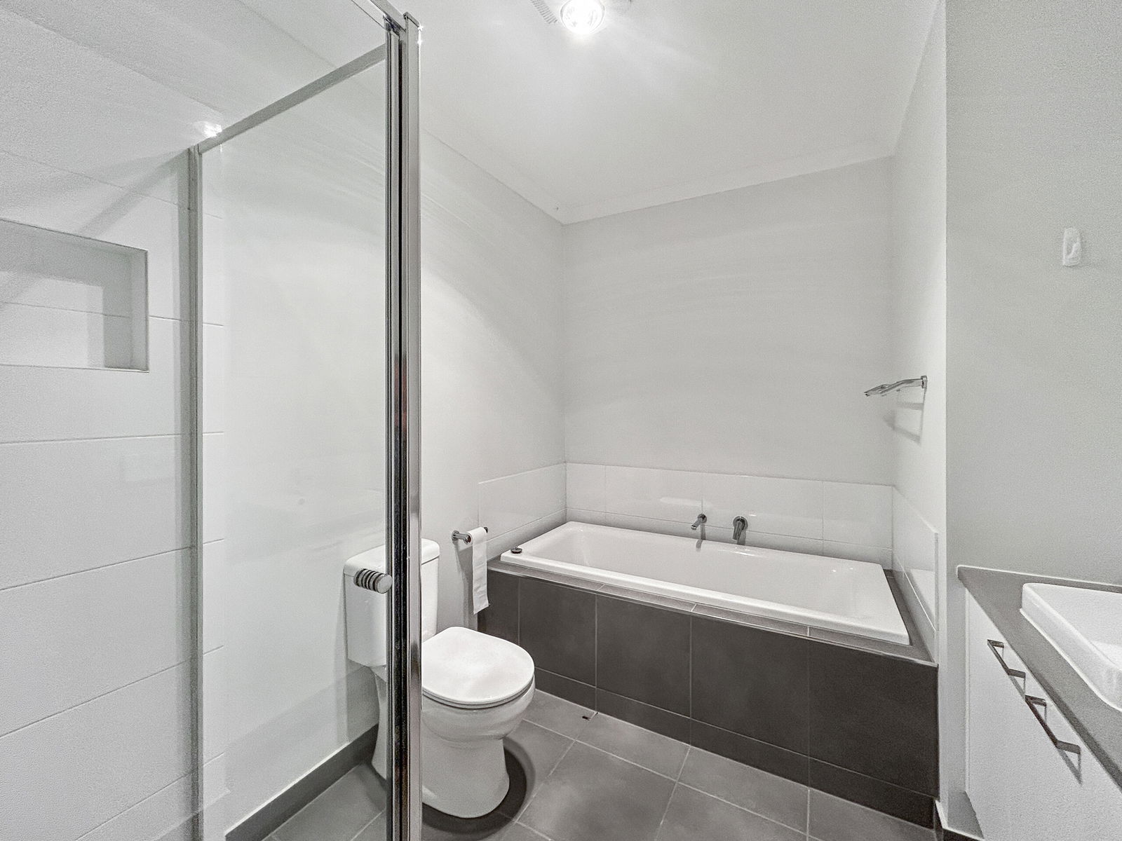 – Main bathroom with shower, bath, vanity and toilet