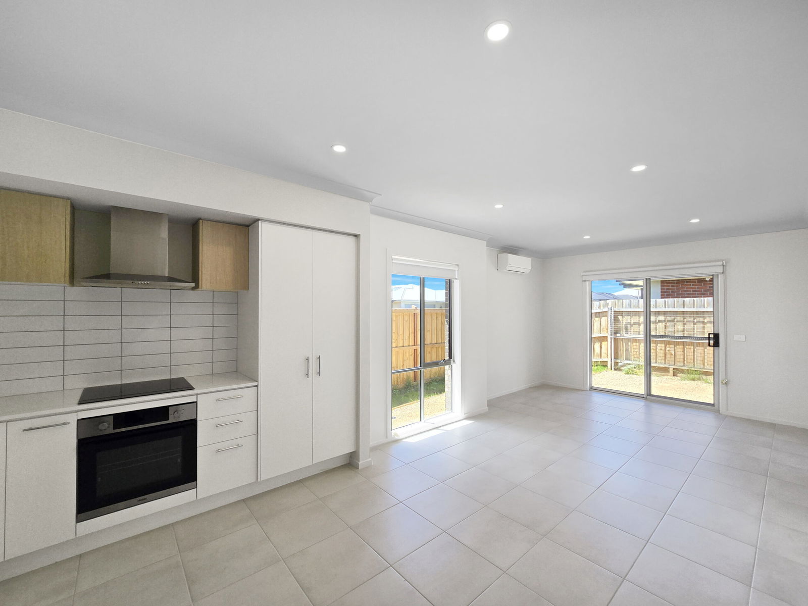 – Large, light and bright, open plan living area with a split system unit and flyscreens for the perfect climate control