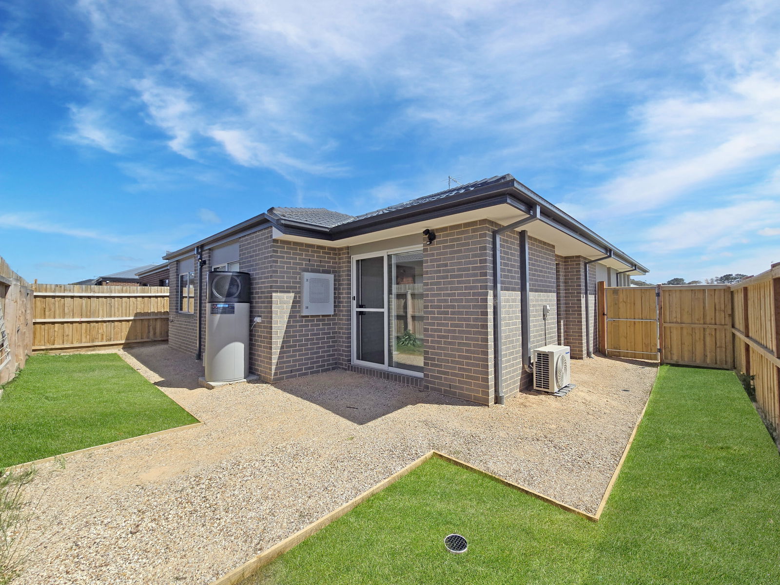 – Split system in the open plan area, wall panel heater in the master bedroom, downlights throughout, electric hot water unit