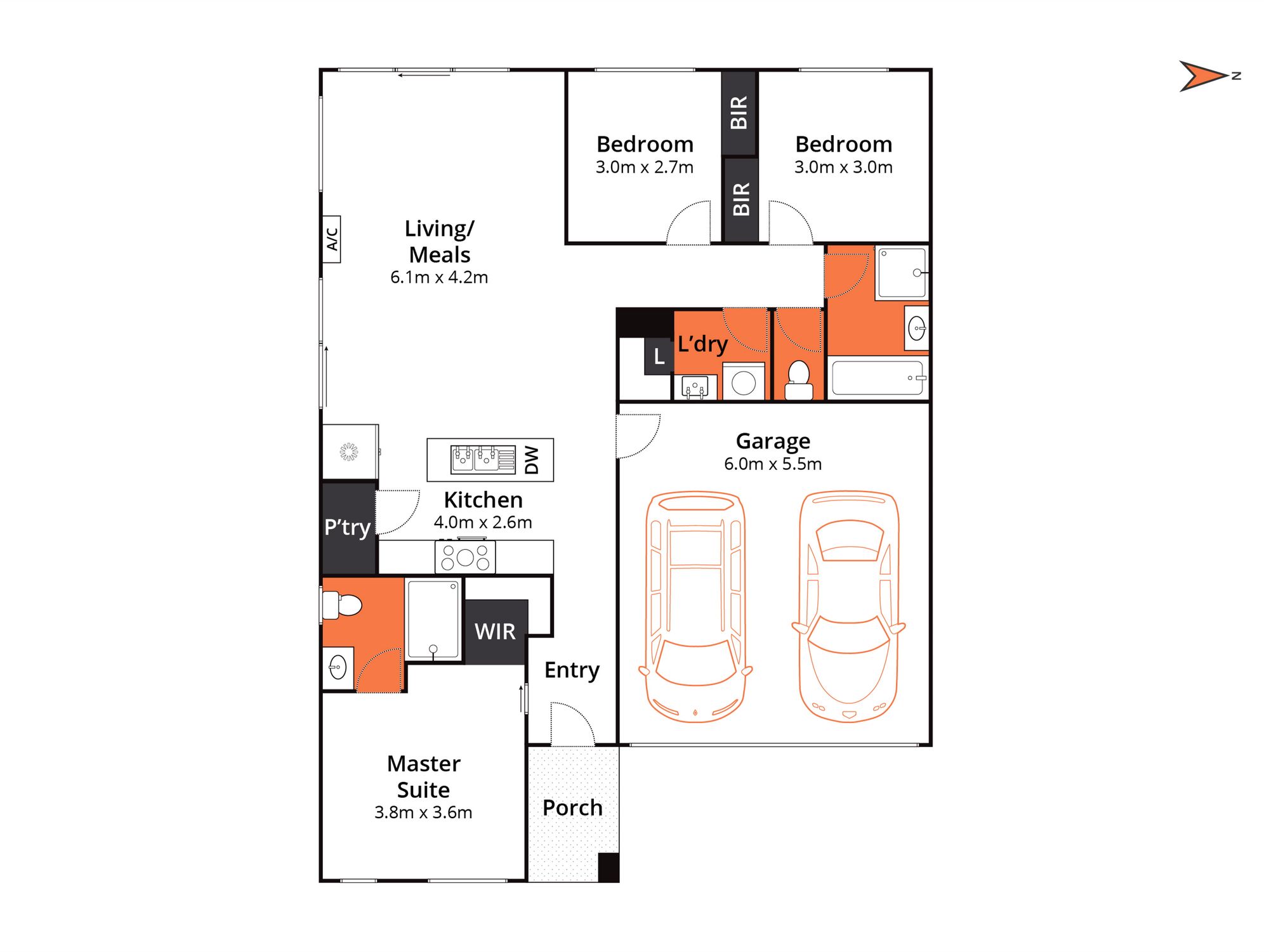 – Master bedroom located at the front of the home with a walk in robe and ensuite including a vanity, shower and toilet
