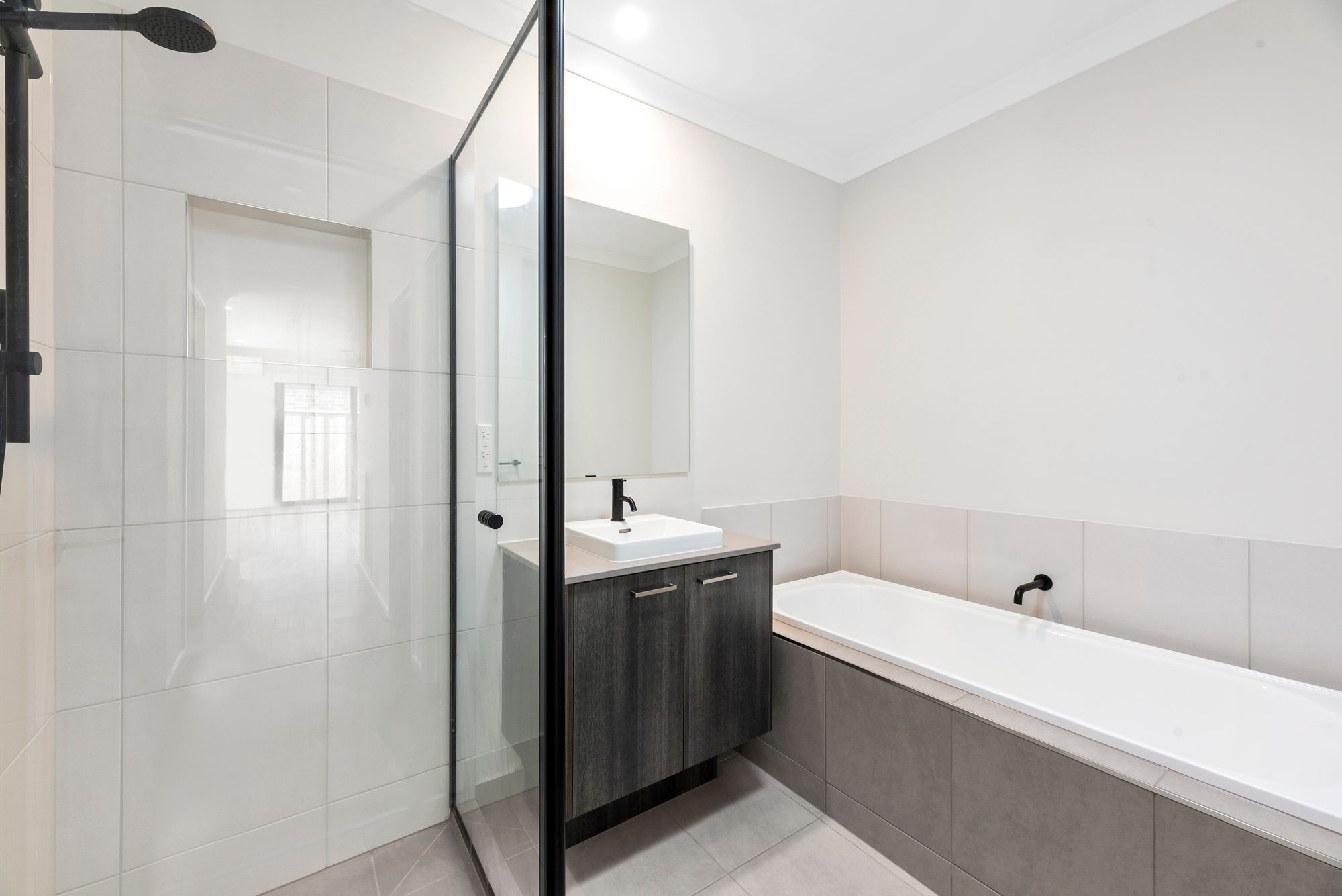 – Central family bathroom including built in bath, shower and separate toilet featuring upgraded black tapware