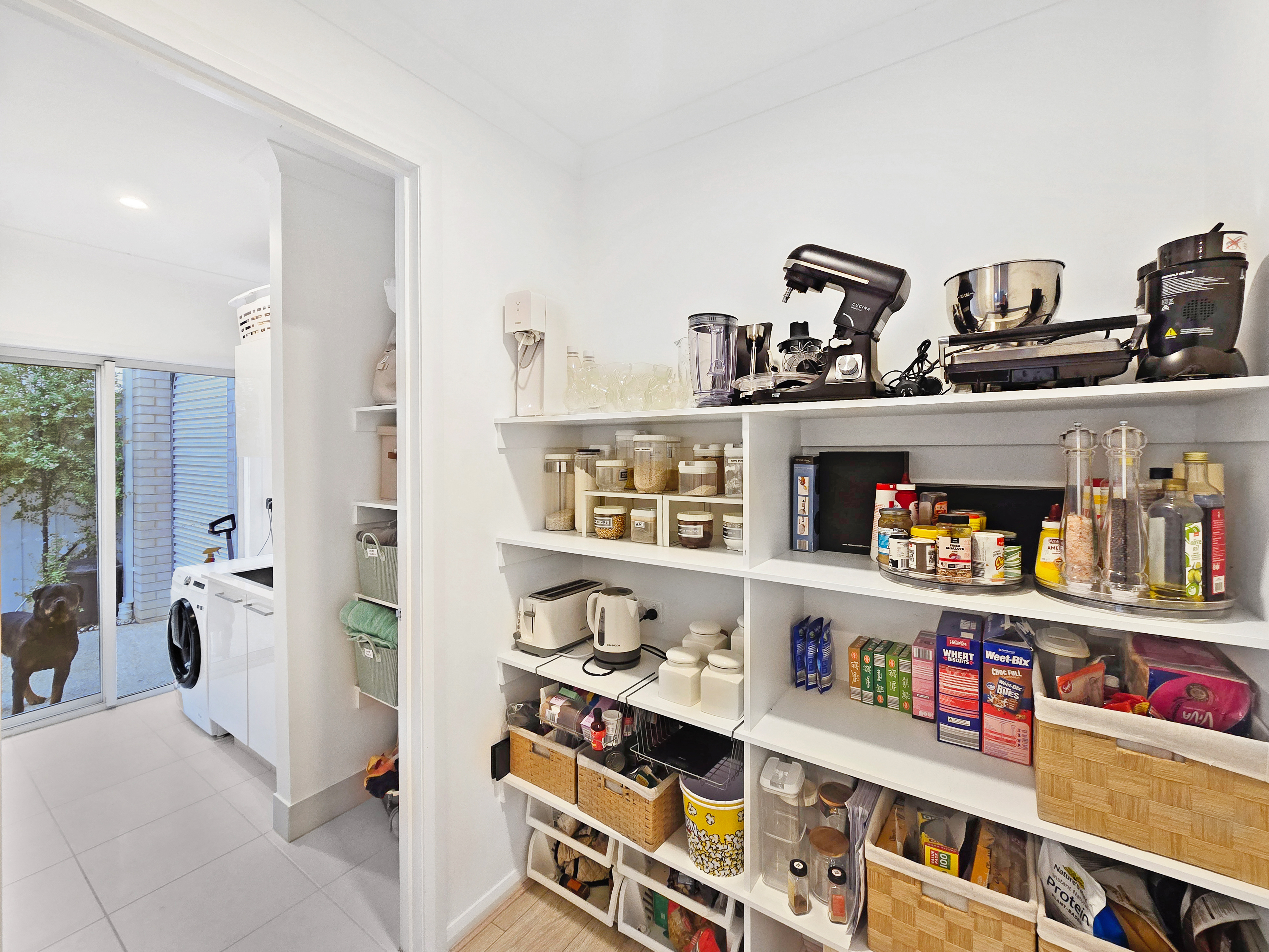 – Large walk-in pantry for all the cooking essentials, adjoining the spacious laundry with built in cabinetry