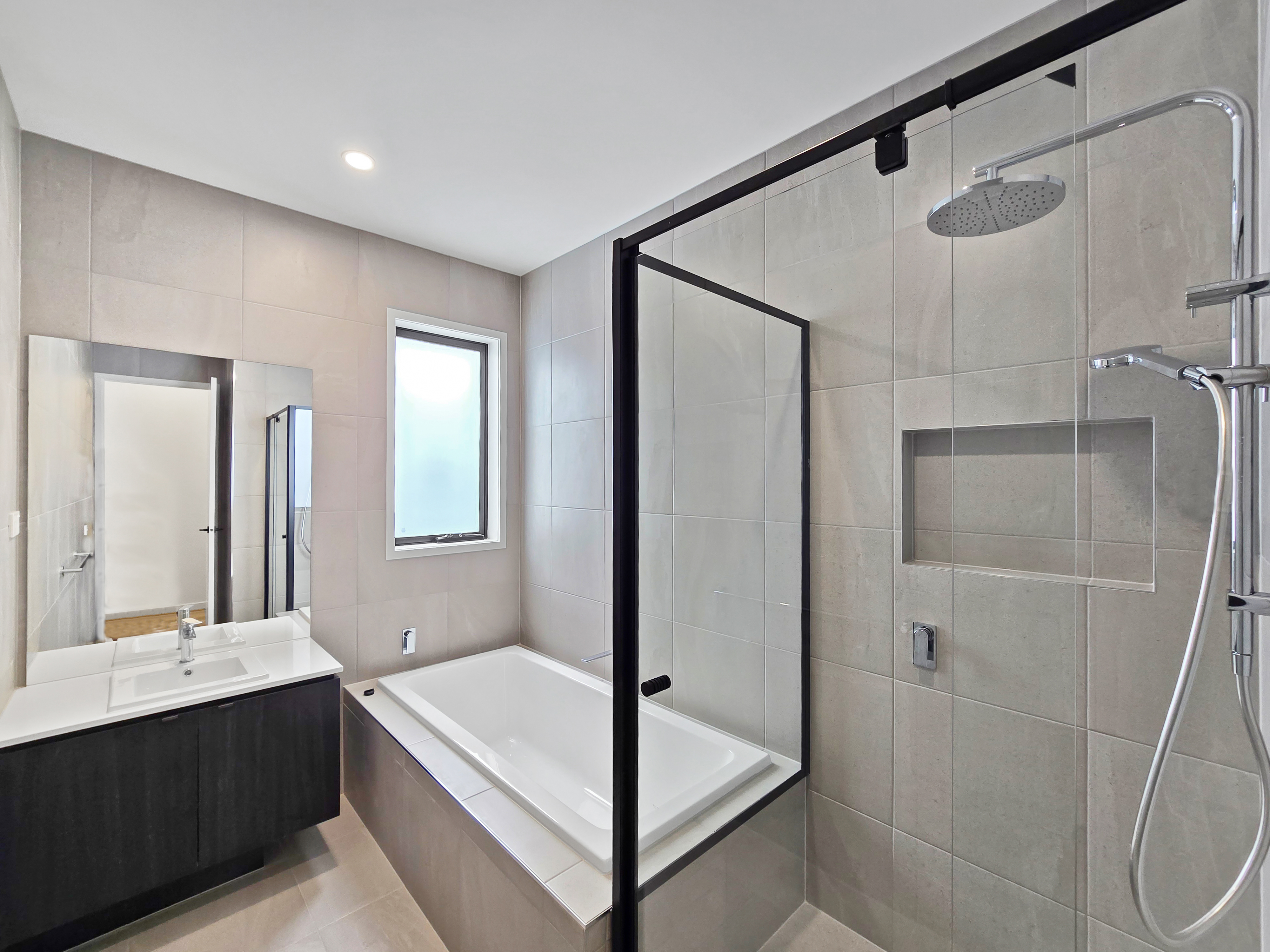 – Master bedroom with a walk in robe and ensuite with floor to ceiling tiles, shower, double vanity and toilet