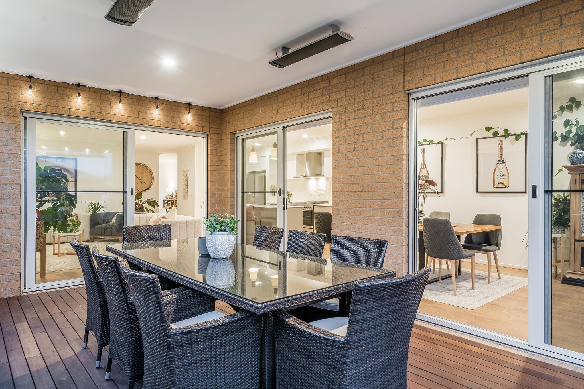 Outdoor: Deck, undercover alfresco, low maintenance yard, grass, garden shed, cafe blinds and strip heating for year round comfort