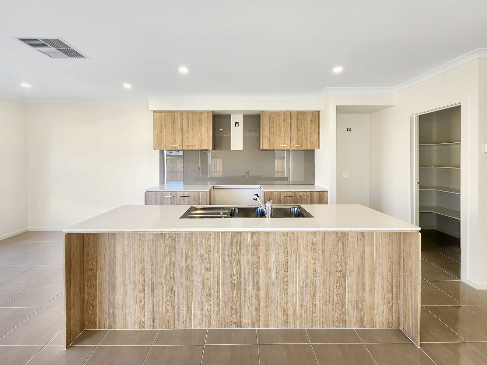 – Stunning kitchen with island bench, stone bench tops, 900mm gas cook top and oven (to be installed prior to tenancy), dishwasher, and large walk in pantry