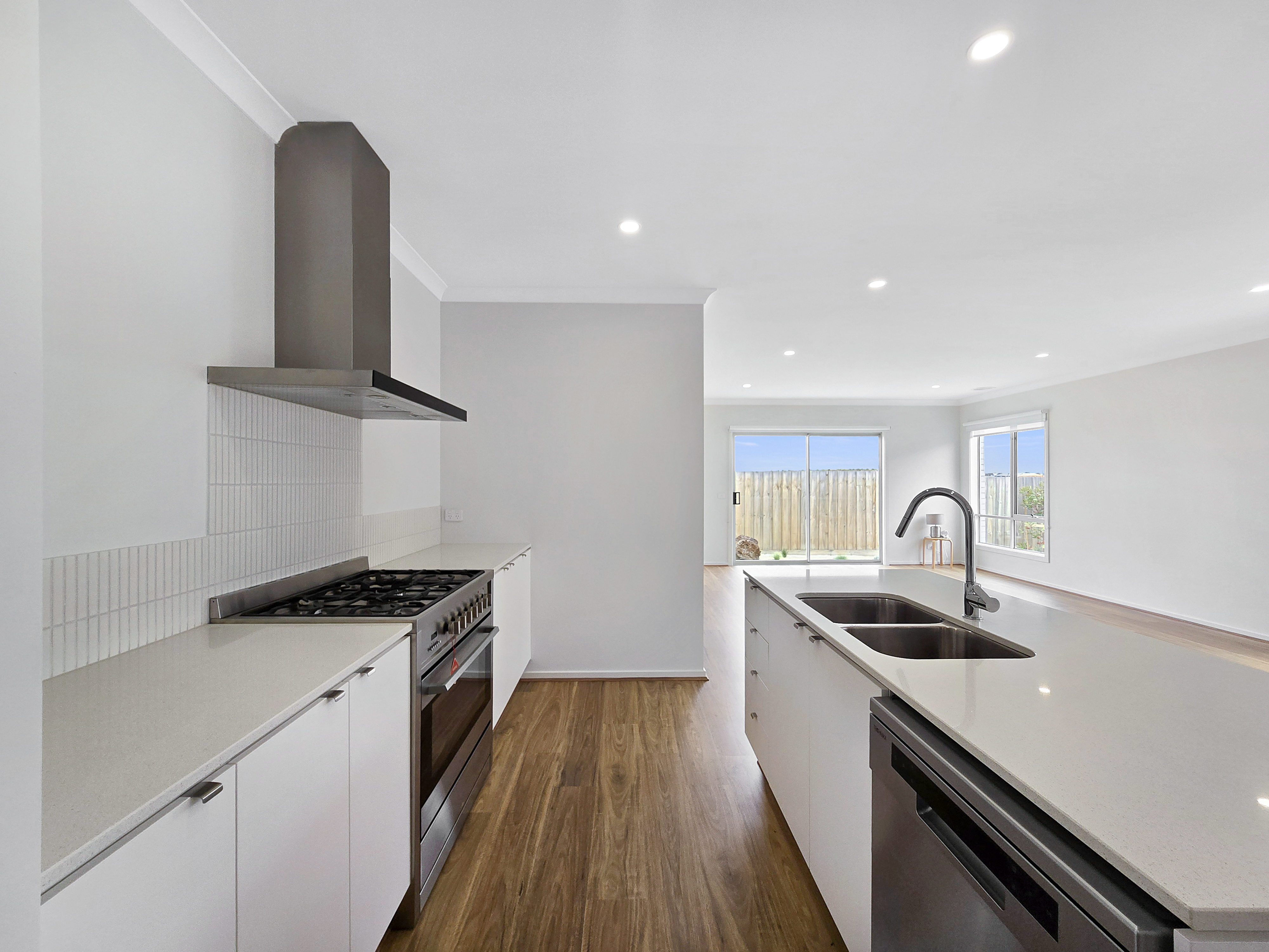 – Kitchen includes 900mm cook-top and oven, dishwasher, feature tile splashback, stone benchtops, walk in pantry and ample storage