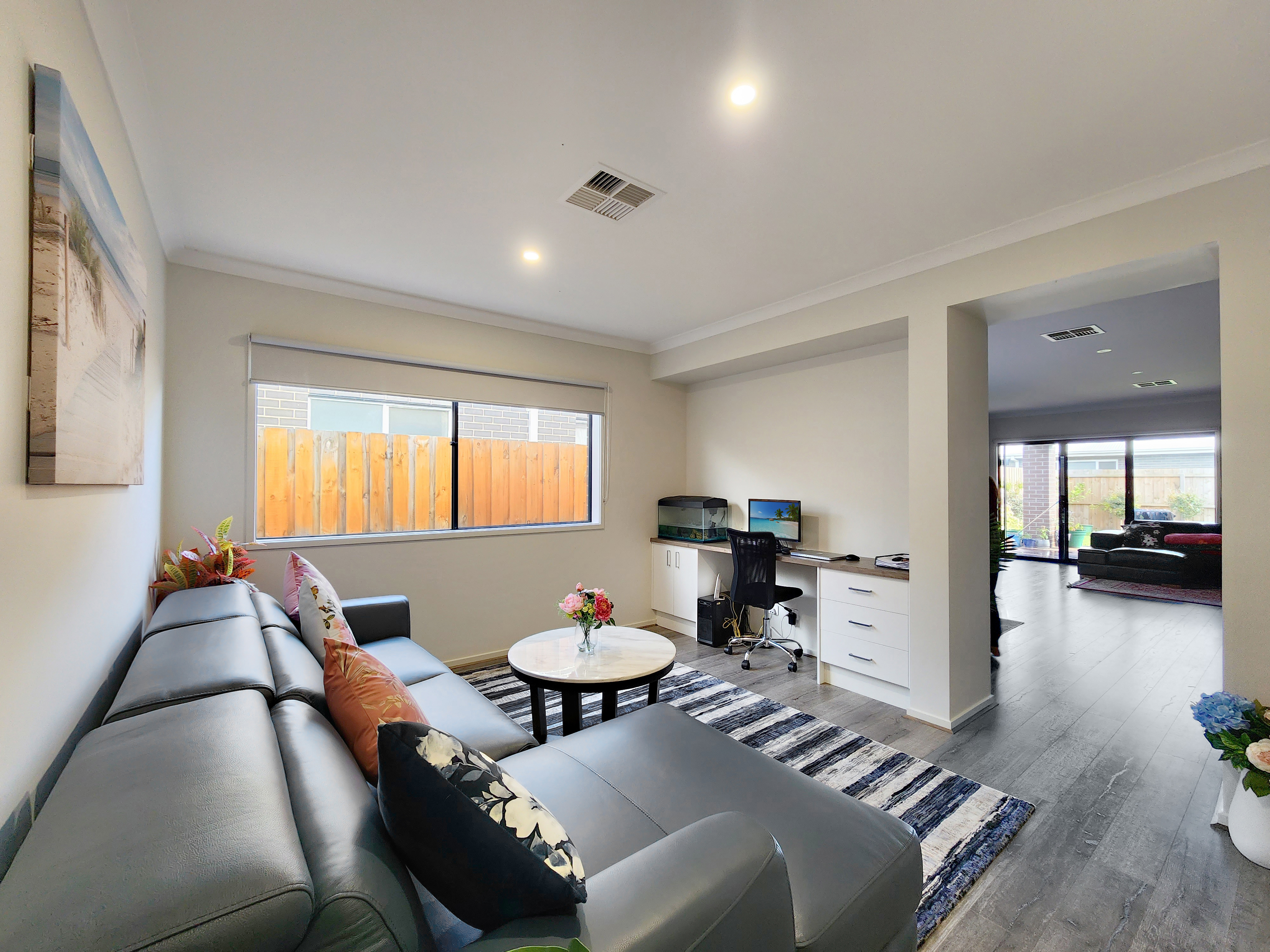 – Sliding door from lounge to an undercover decked alfresco area – Low maintenance gardens
