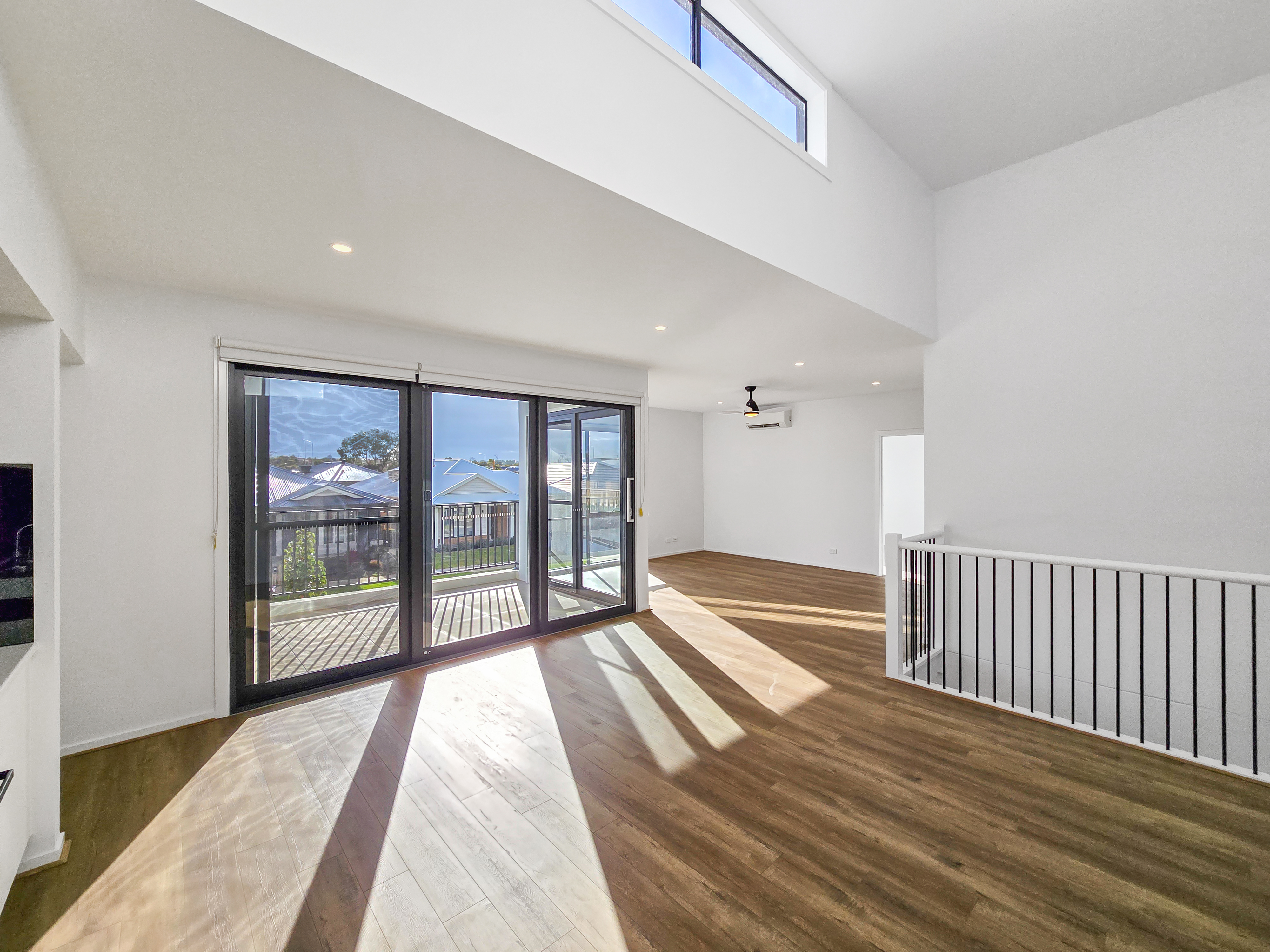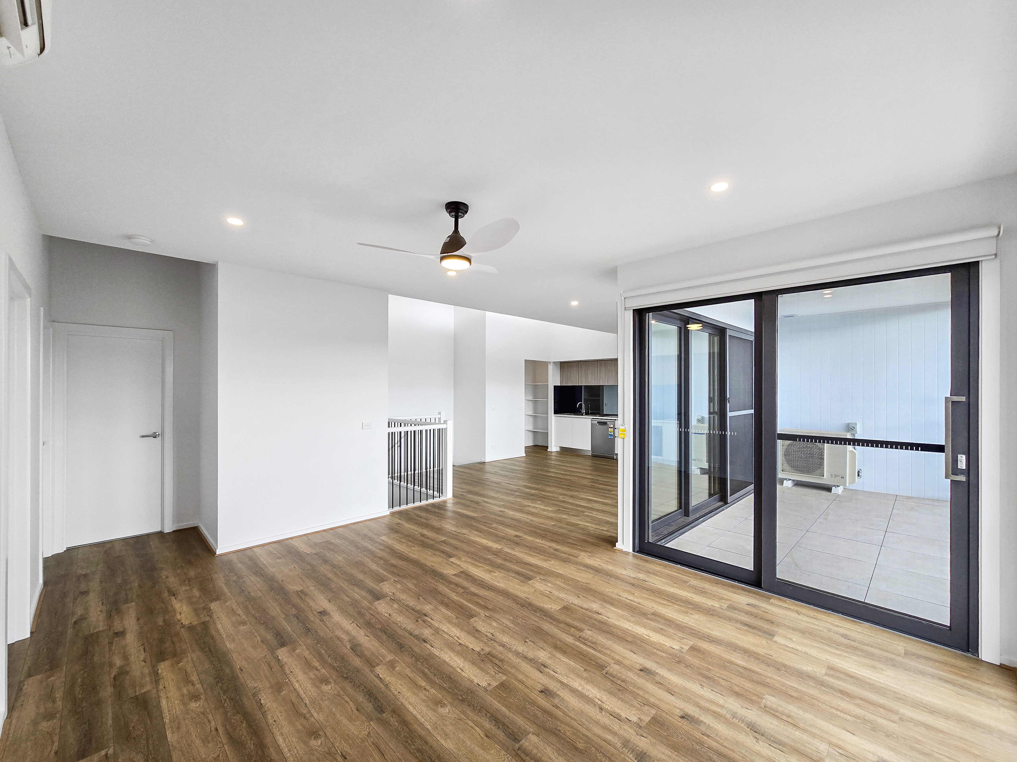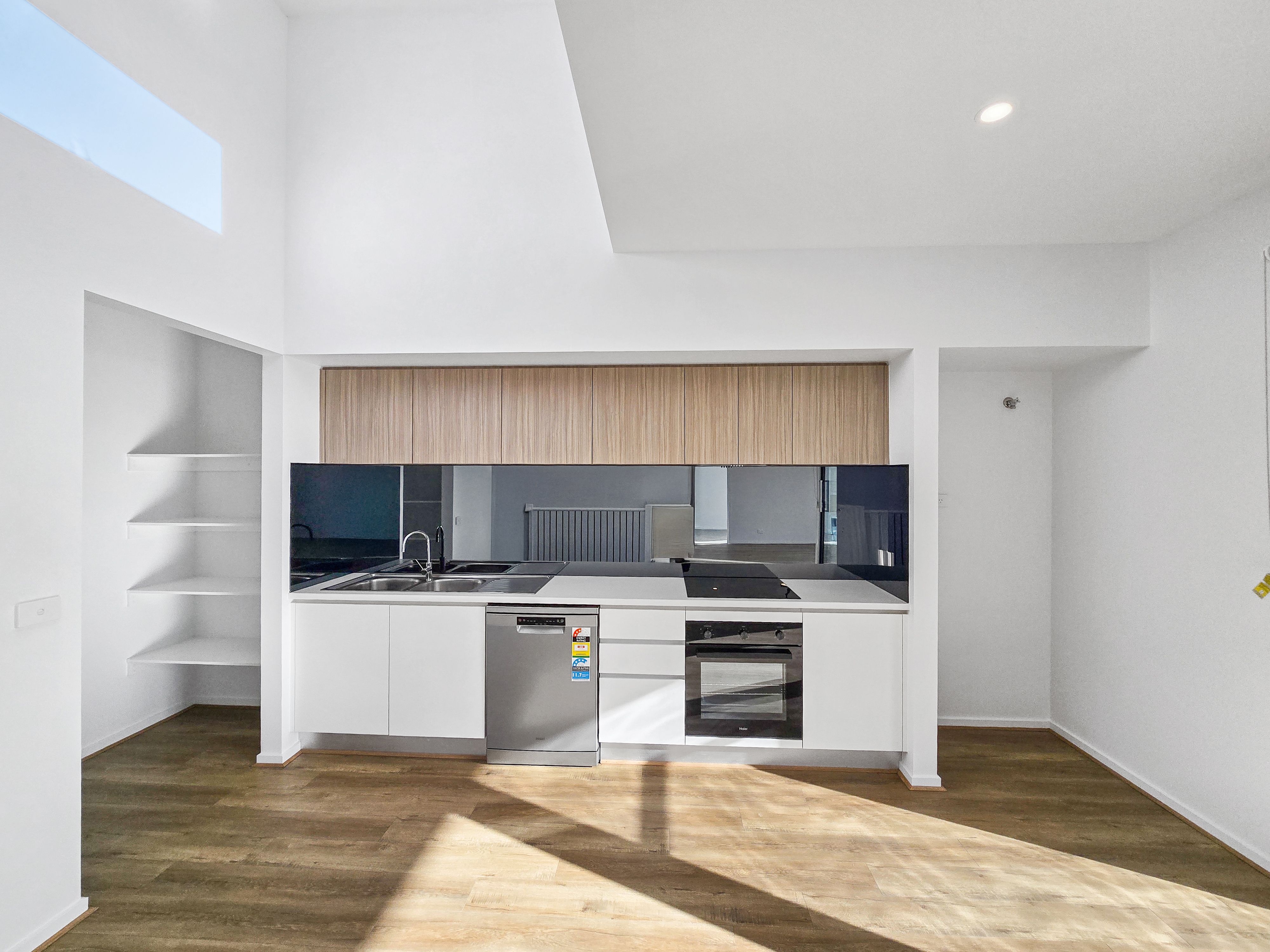 – Open plan kitchen and dining area with plenty of natural light, large stacker doors to the balcony