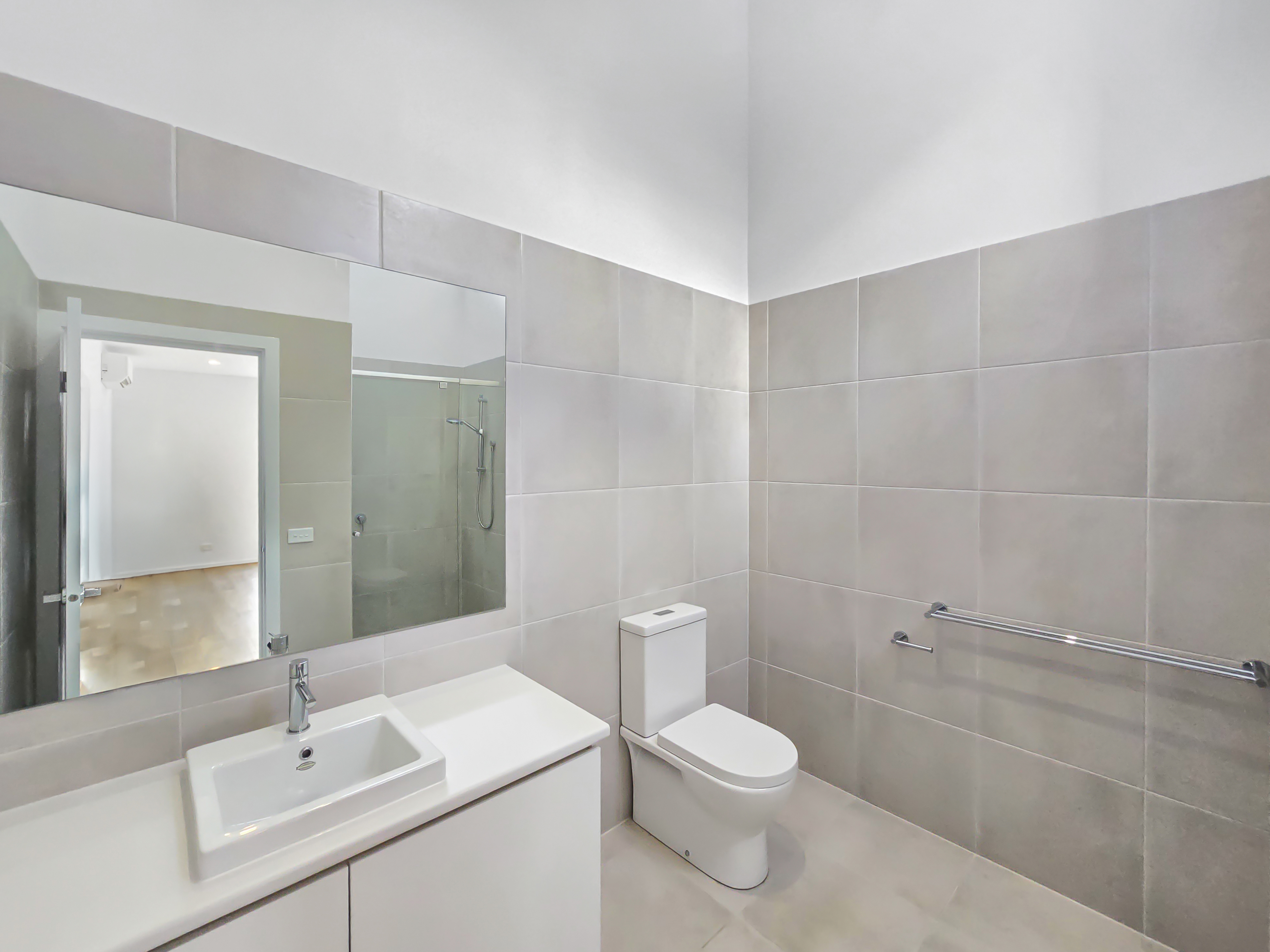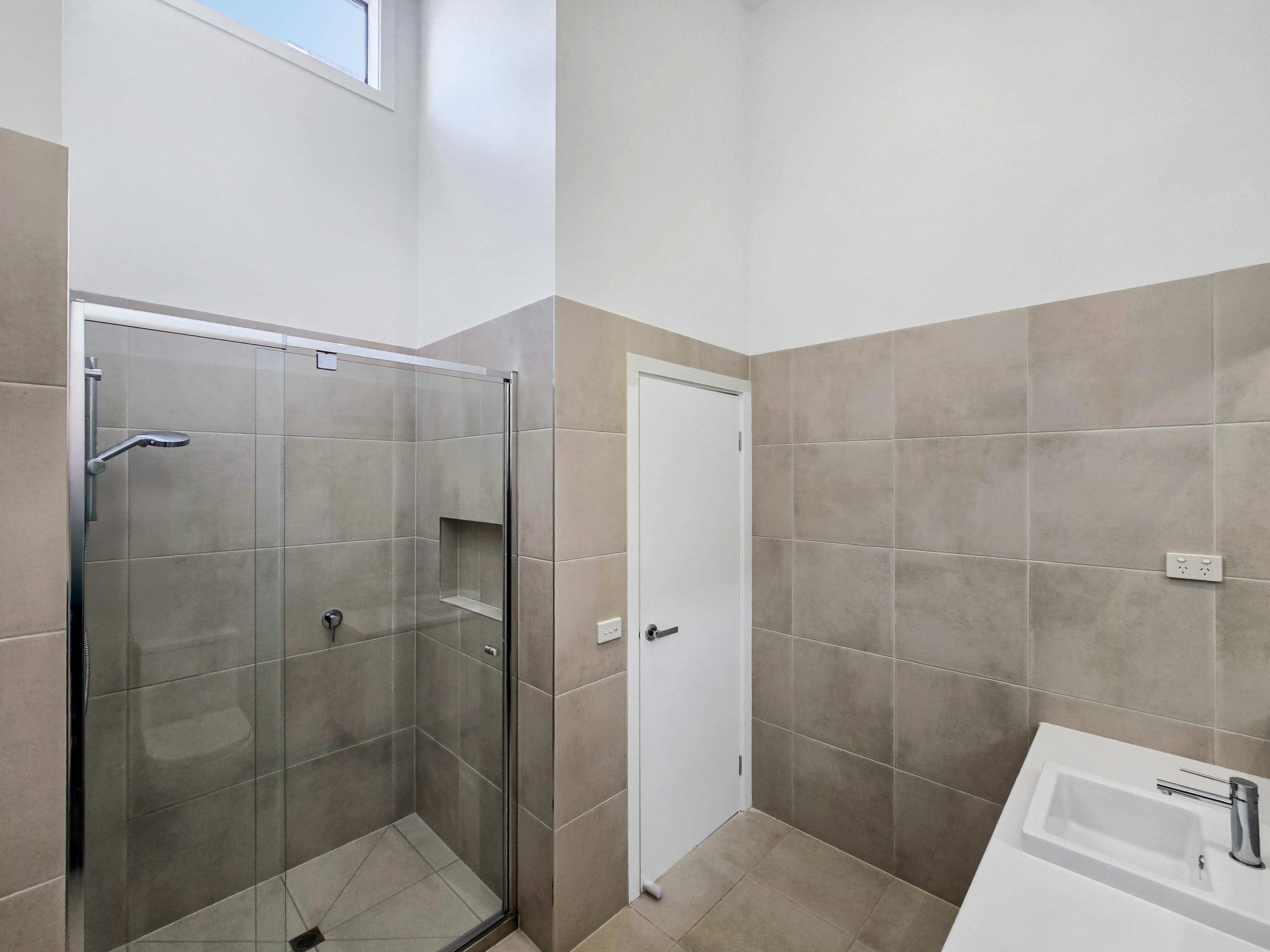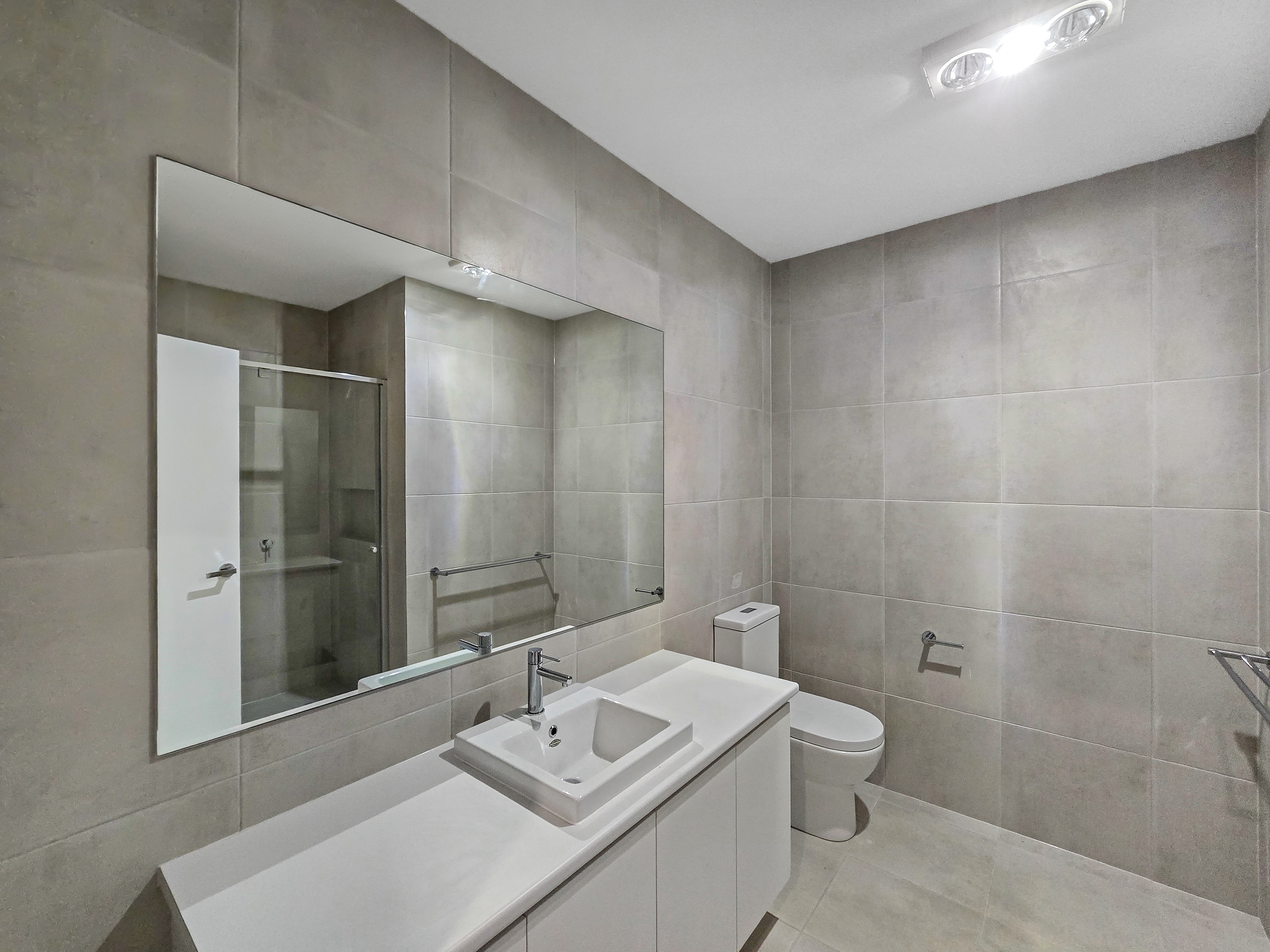 – Main bathroom with floor to ceiling tiling, oversized shower, vanity and toilet