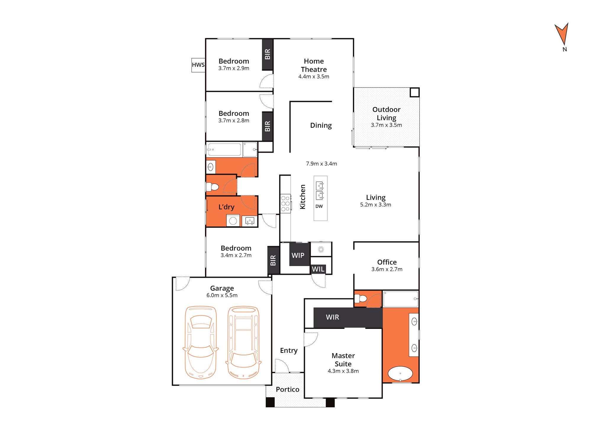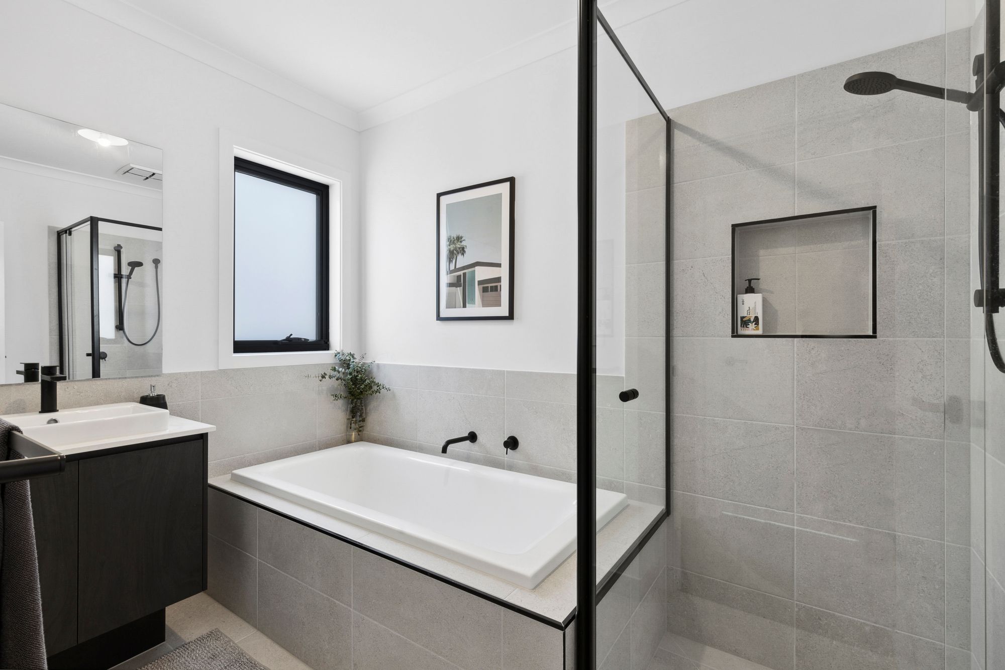 – A generous master bedroom with walk in robe and ensuite with full floor to ceiling tiles, a double vanity, extra large shower, free standing bath and separate toilet