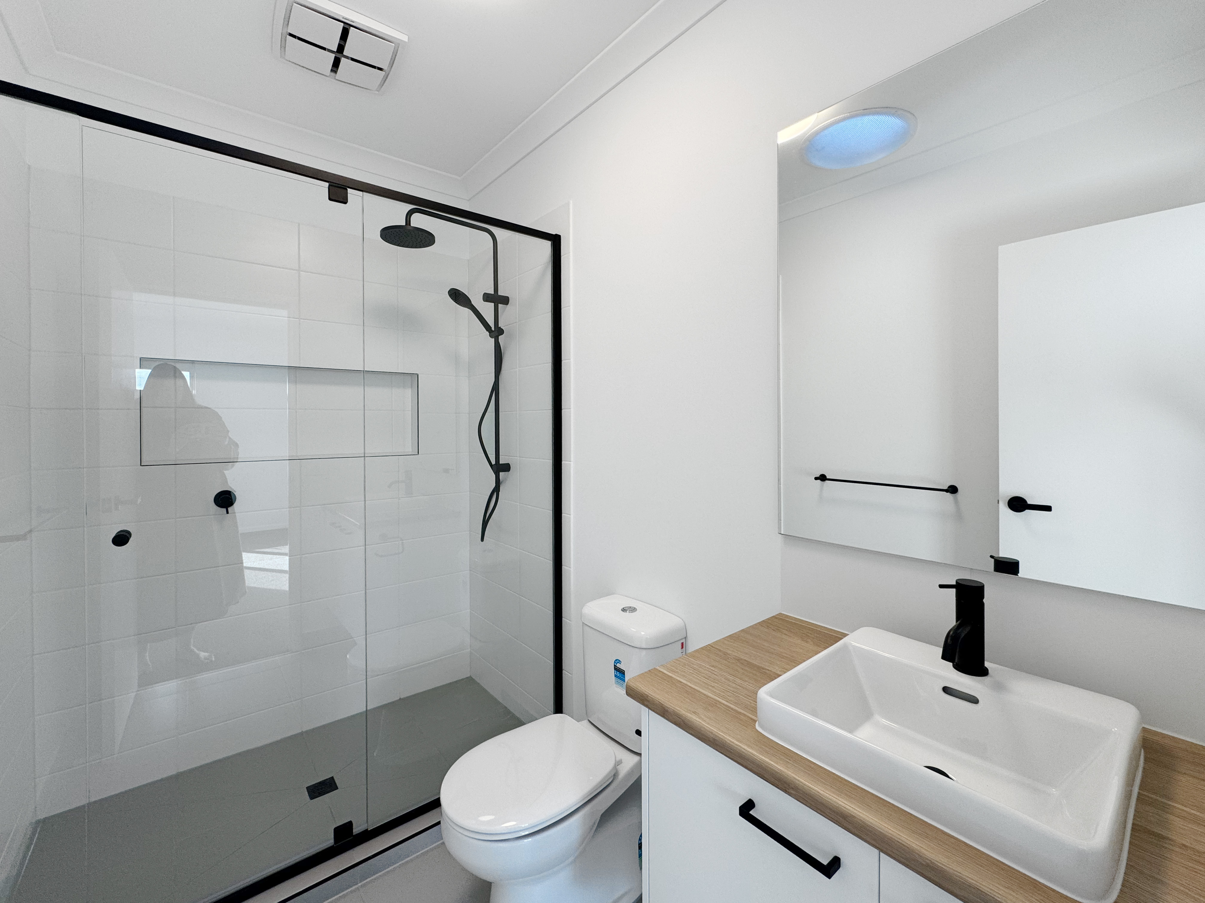 – Ensuite with skylight above, an extra large shower, vanity and a toilet
