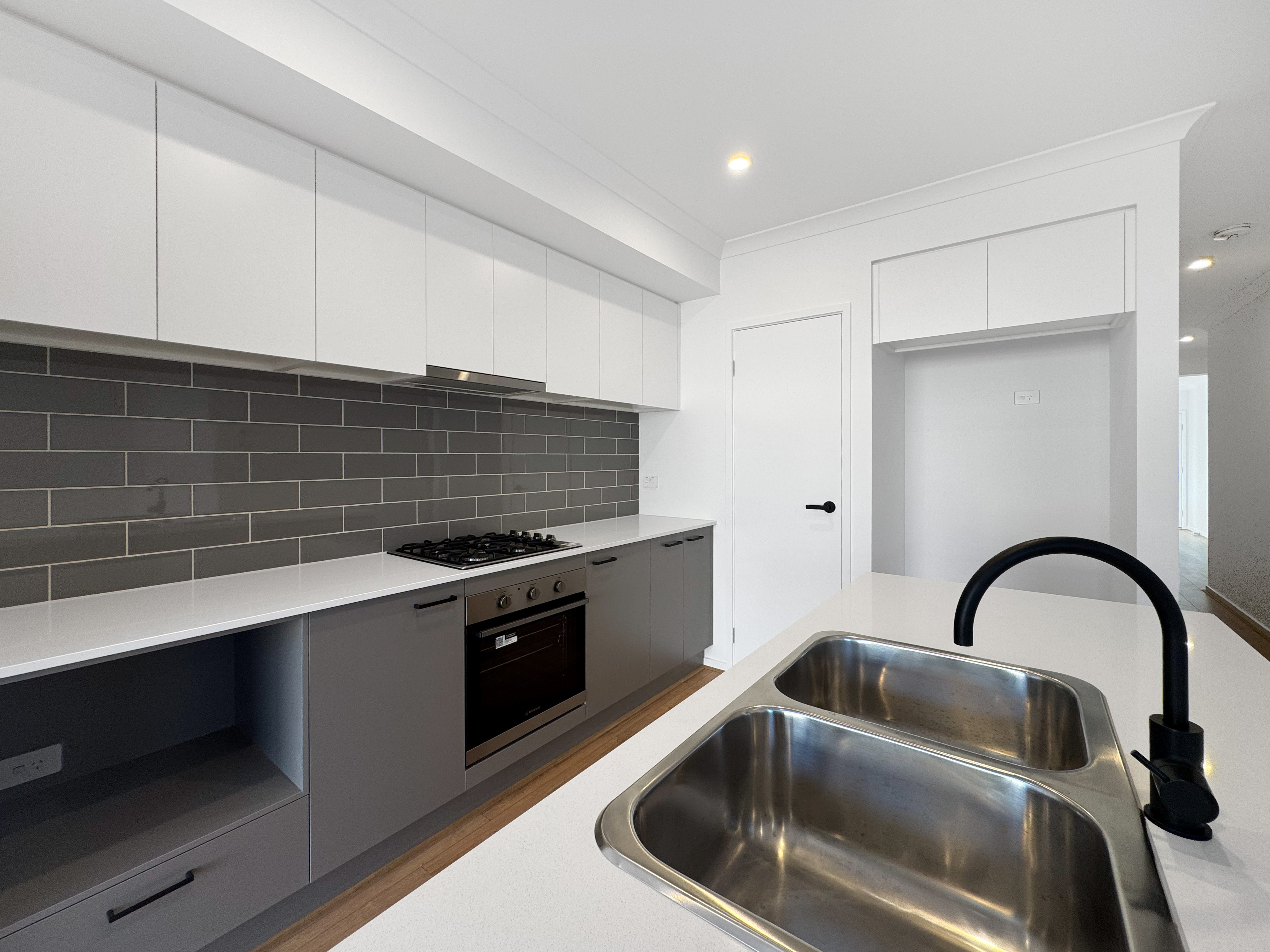 – Well-equipped kitchen with stone benchtop, 4 burner gas cooktop, 600mm electric oven, stainless steel dishwasher, ample cupboard space and a built-in pantry