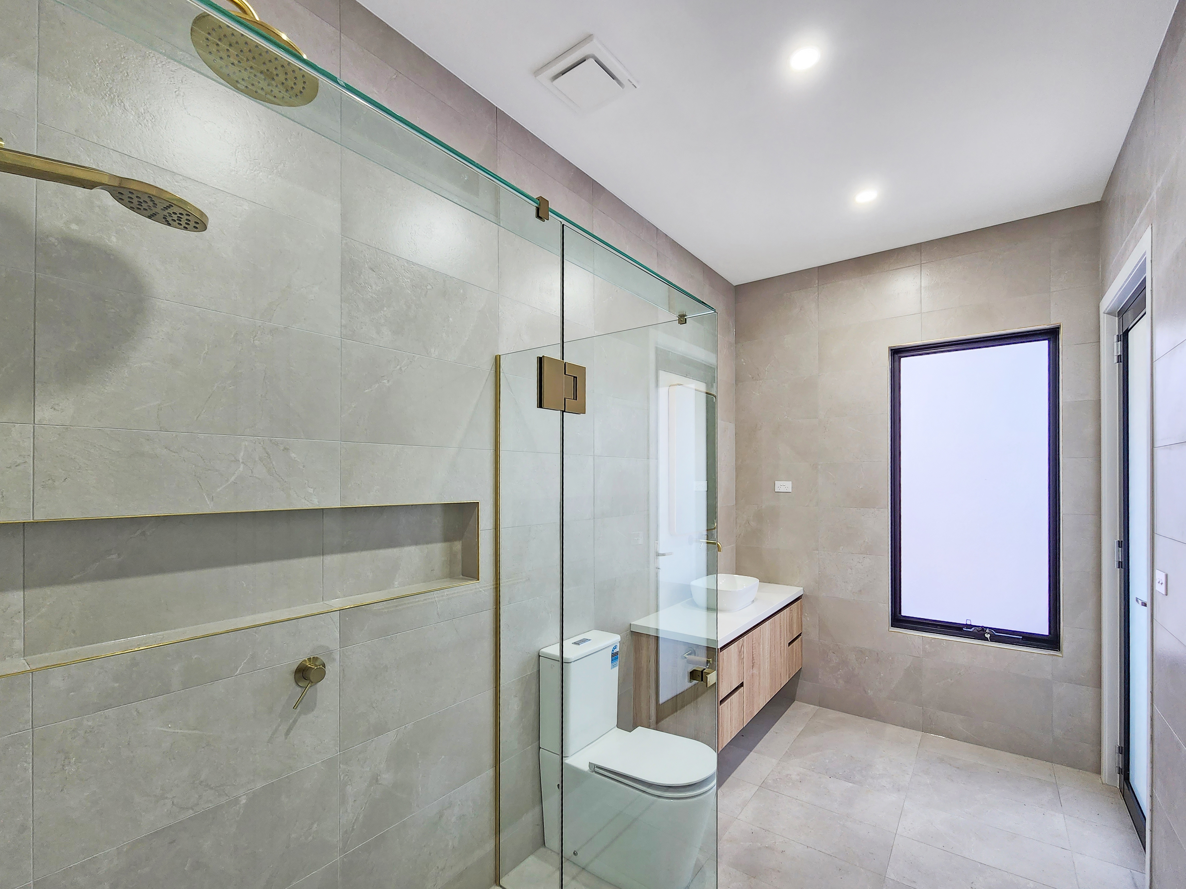 – Guest quarters downstairs, including a large walk in robe, and ensuite bathroom with walk-in shower, toilet, vanity and feature lighting