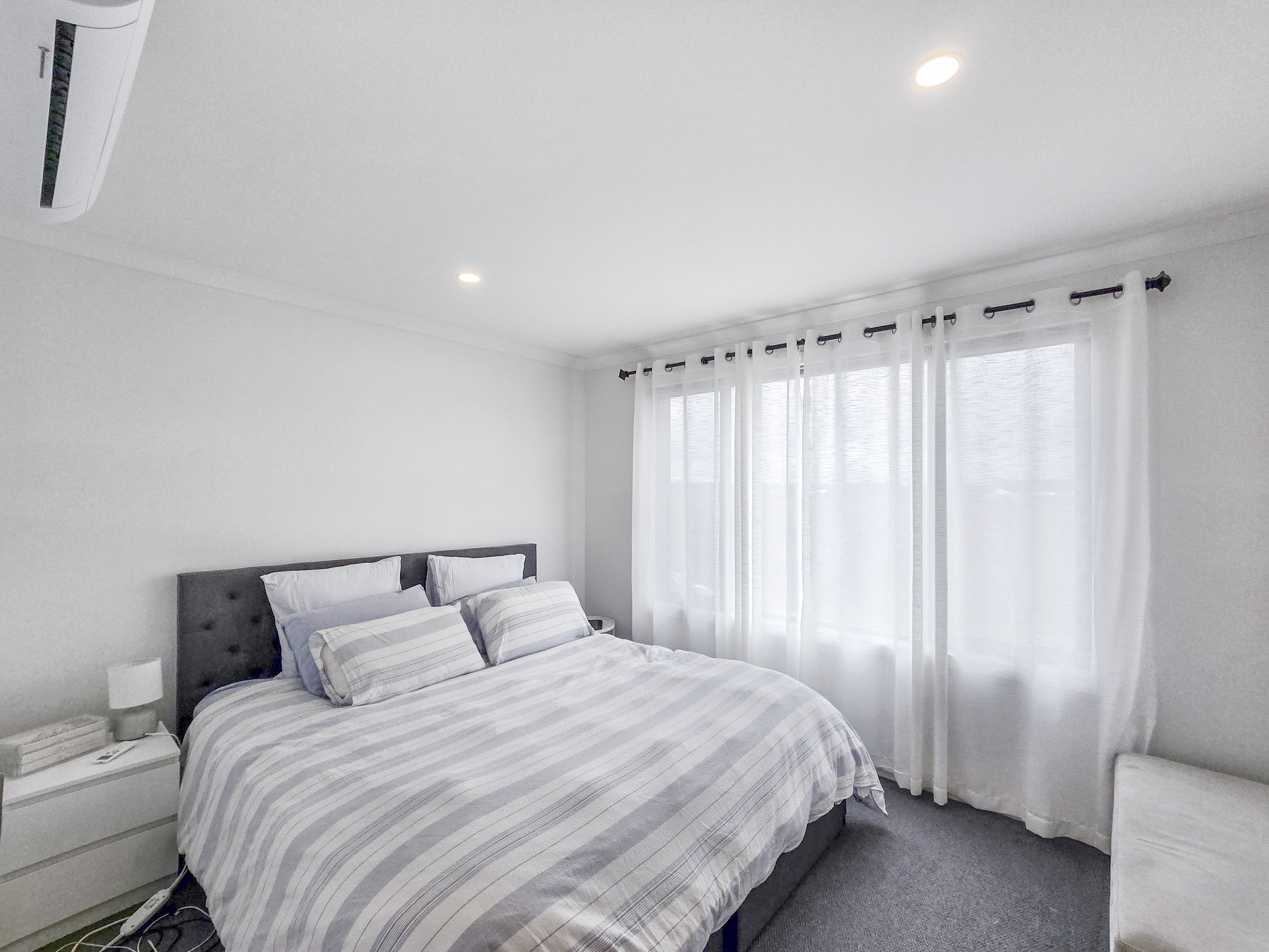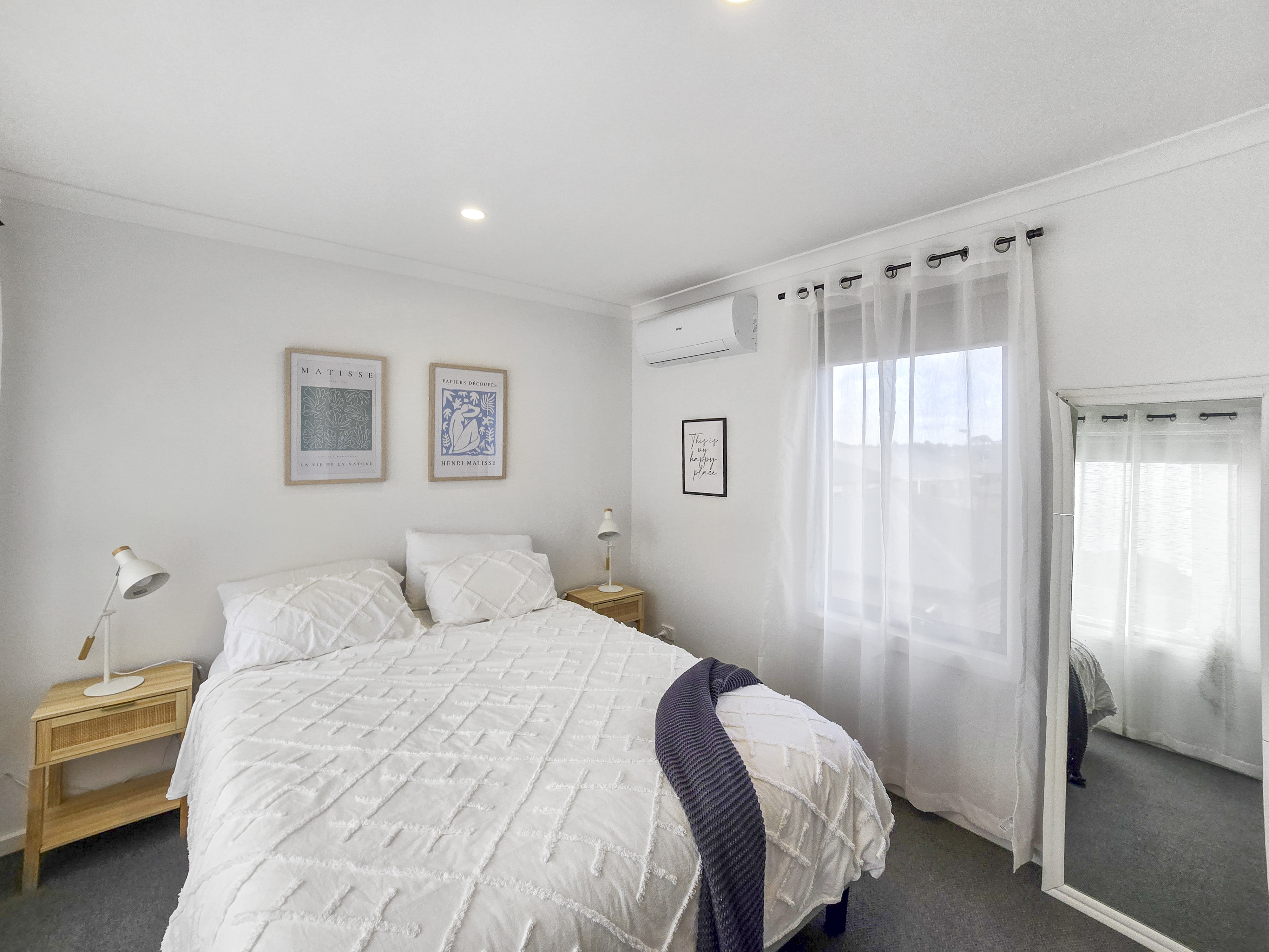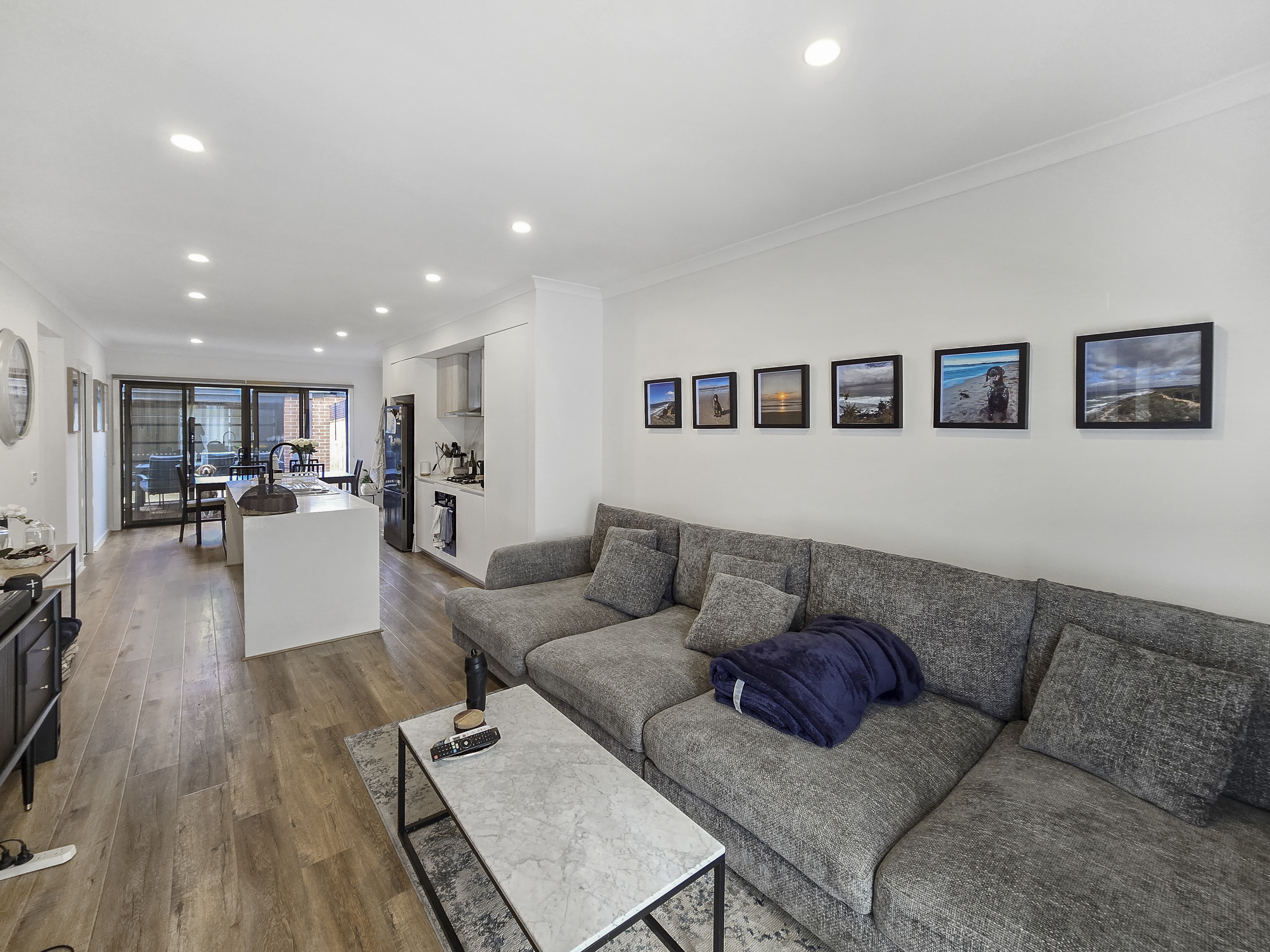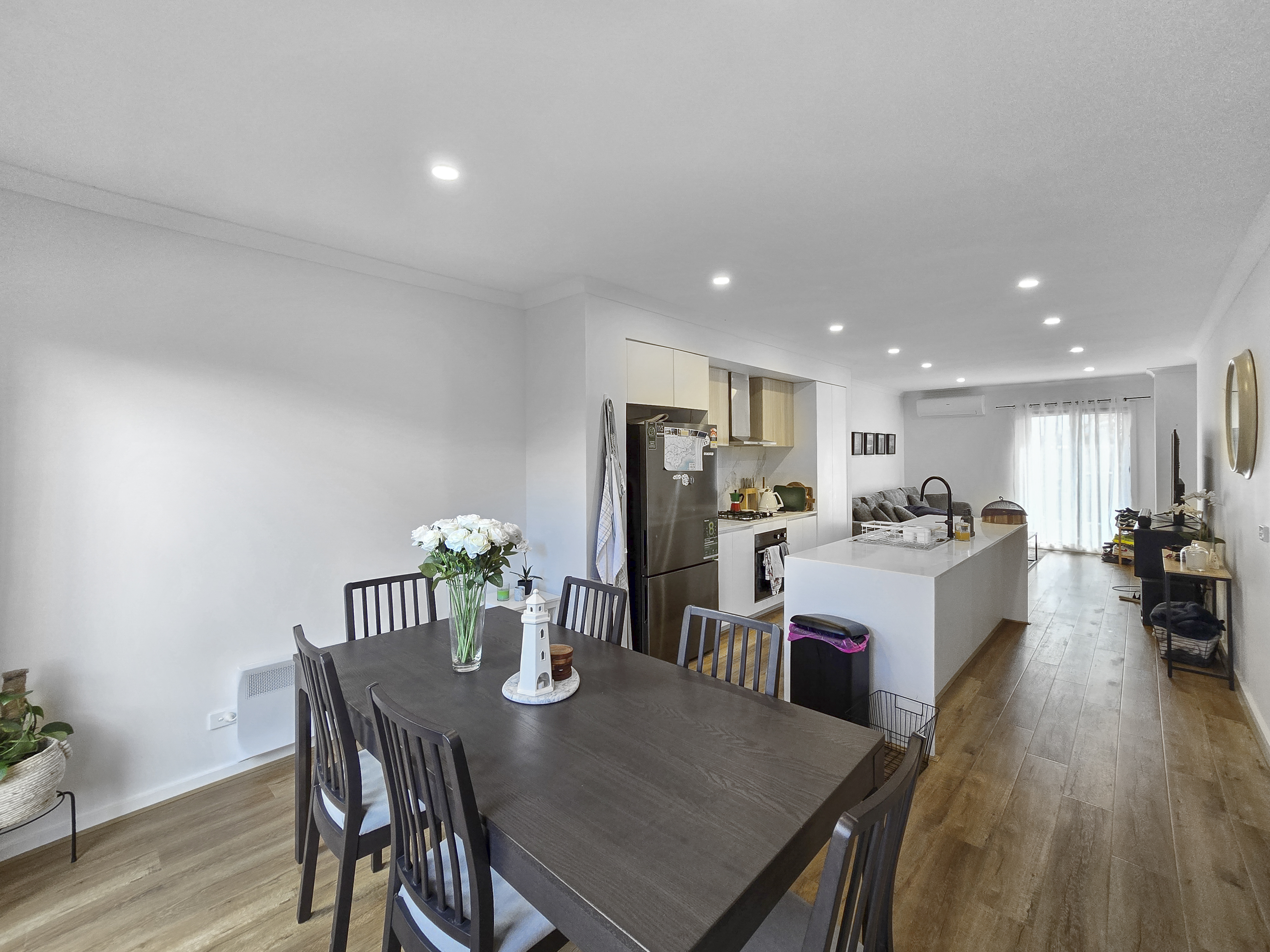 – Open plan living, kitchen and dining area with plenty of natural light and a split system