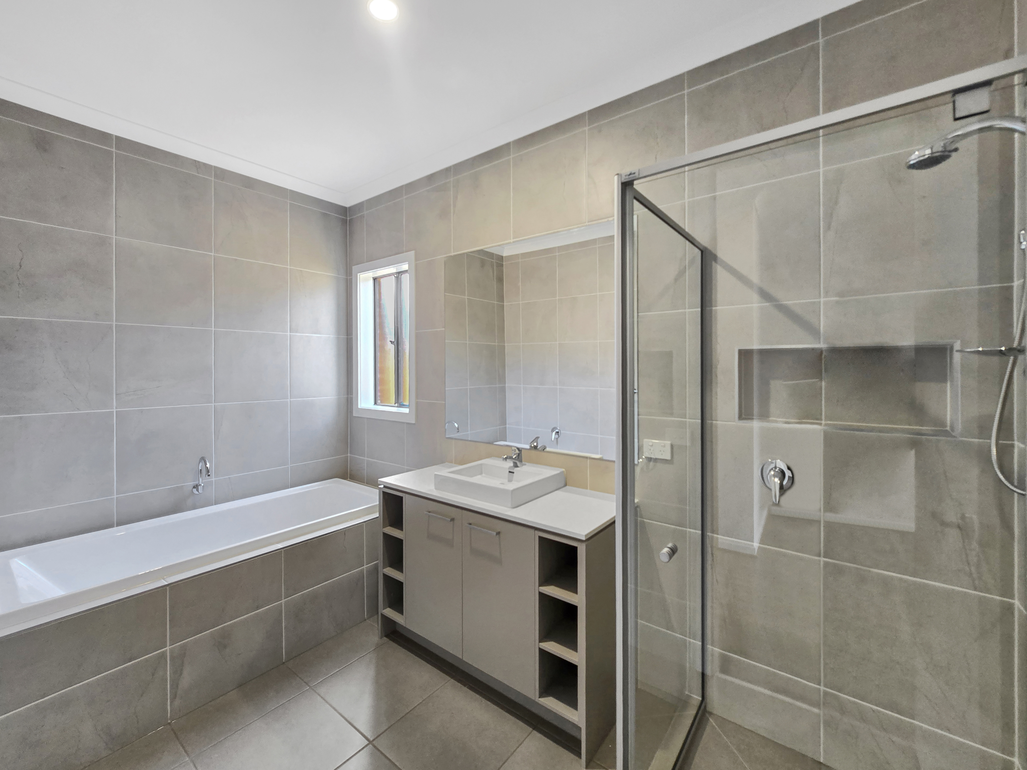 – Master bedroom includes a walk-in robe and ensuite with double vanity, large shower and a toilet