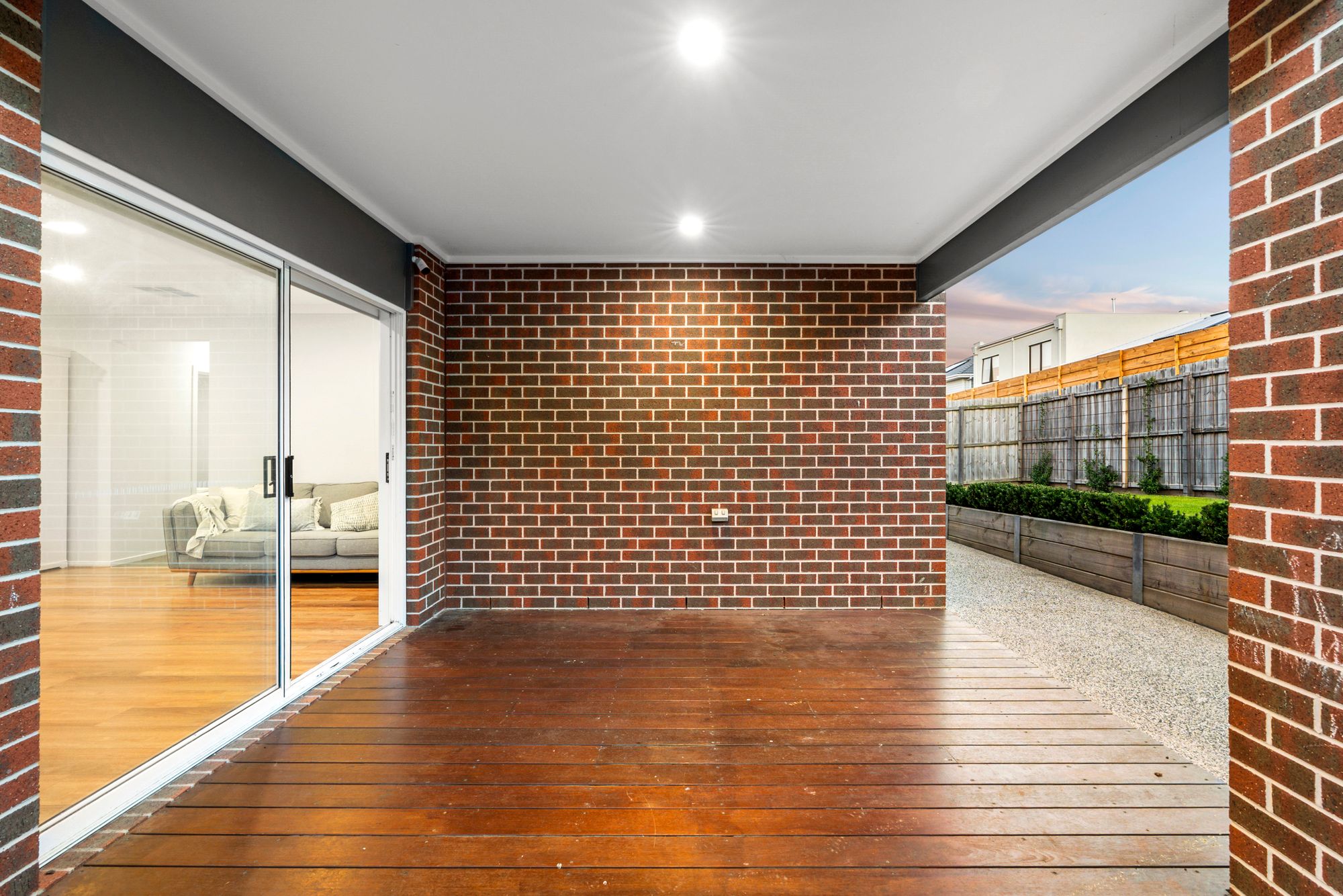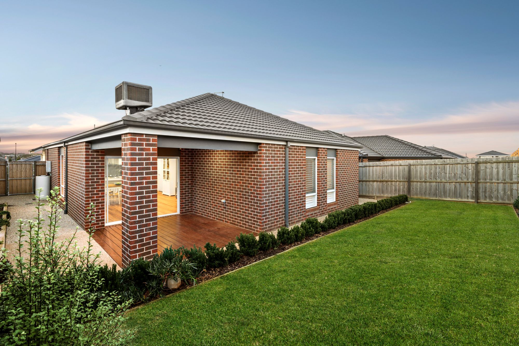 Outdoor: With a focus on lifestyle and low-maintenance design, an elegant façade welcomes you into the home while the manicured gardens are defined by the concrete driveway and entry to the home. The South facing rear yard showcases the epitome of fantastic family living and unforgettable entertainment with it’s undercover and decked alfresco, easy maintenance gardens and lush grassed area. Exposed aggregate pathing surrounds the home with gated side access to the rear yard.