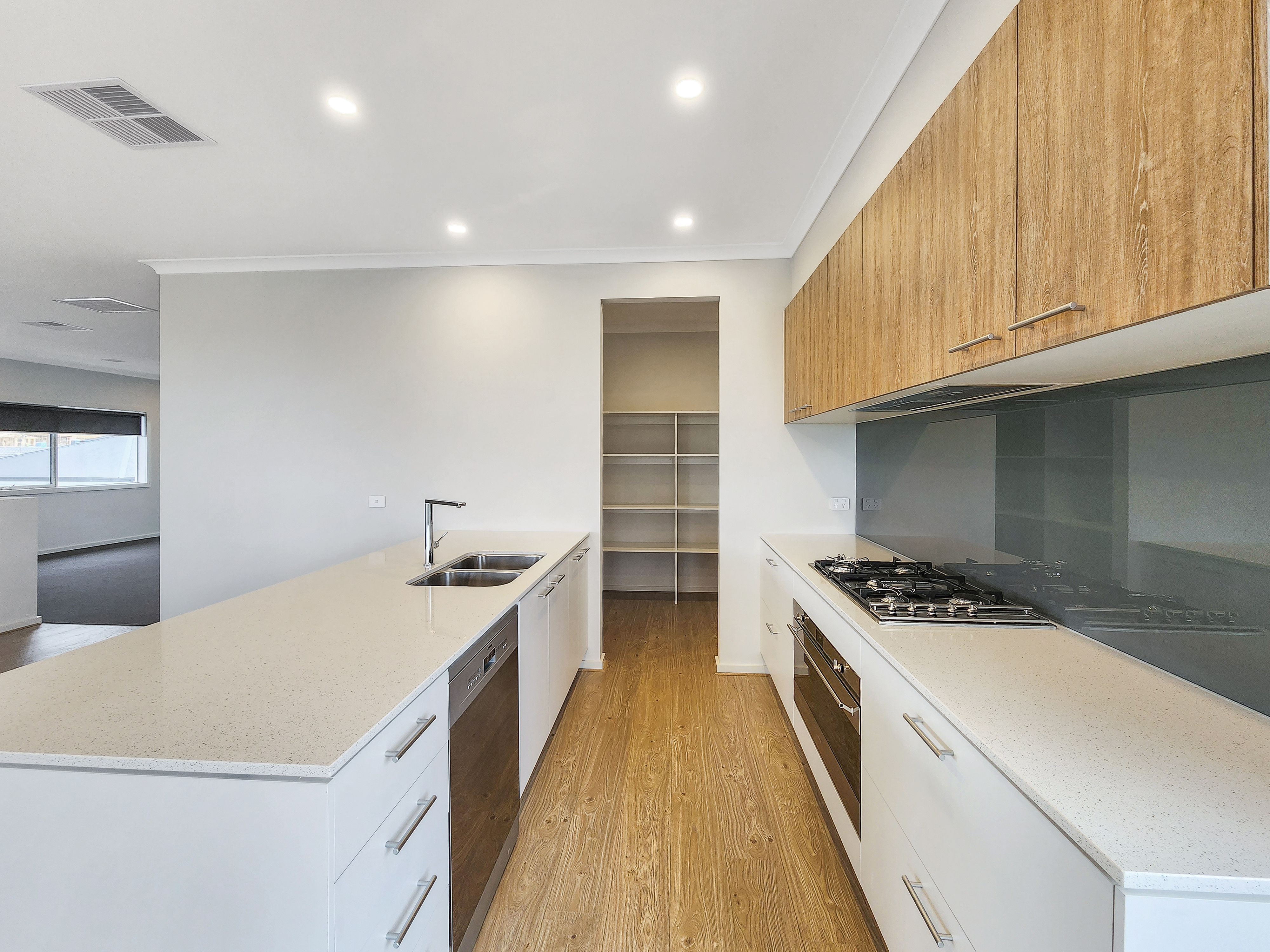 Moving upstairs, the incredible kitchen with stainless steel appliances including a dishwasher, 900mm oven and gas cooktop. Hidden behind the kitchen is the fantastic walk-in pantry with plenty of storage space and spot to put your refrigerator. Kitchen is accompanied by a second spacious living or dining area and a stunning balcony. The balcony is tiled and generously sized, overlooking the beautiful Sparrovale wetlands, perfect for a dining setting and dinner with the family.