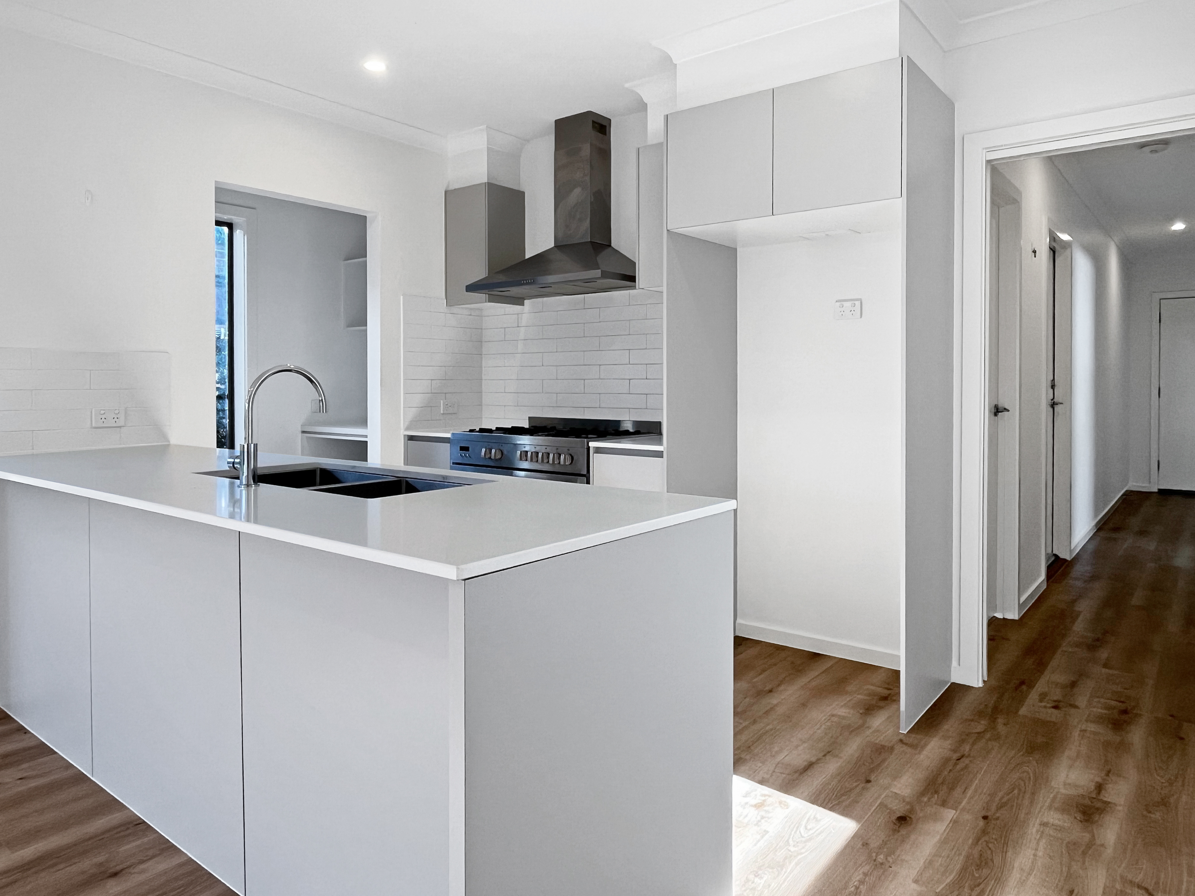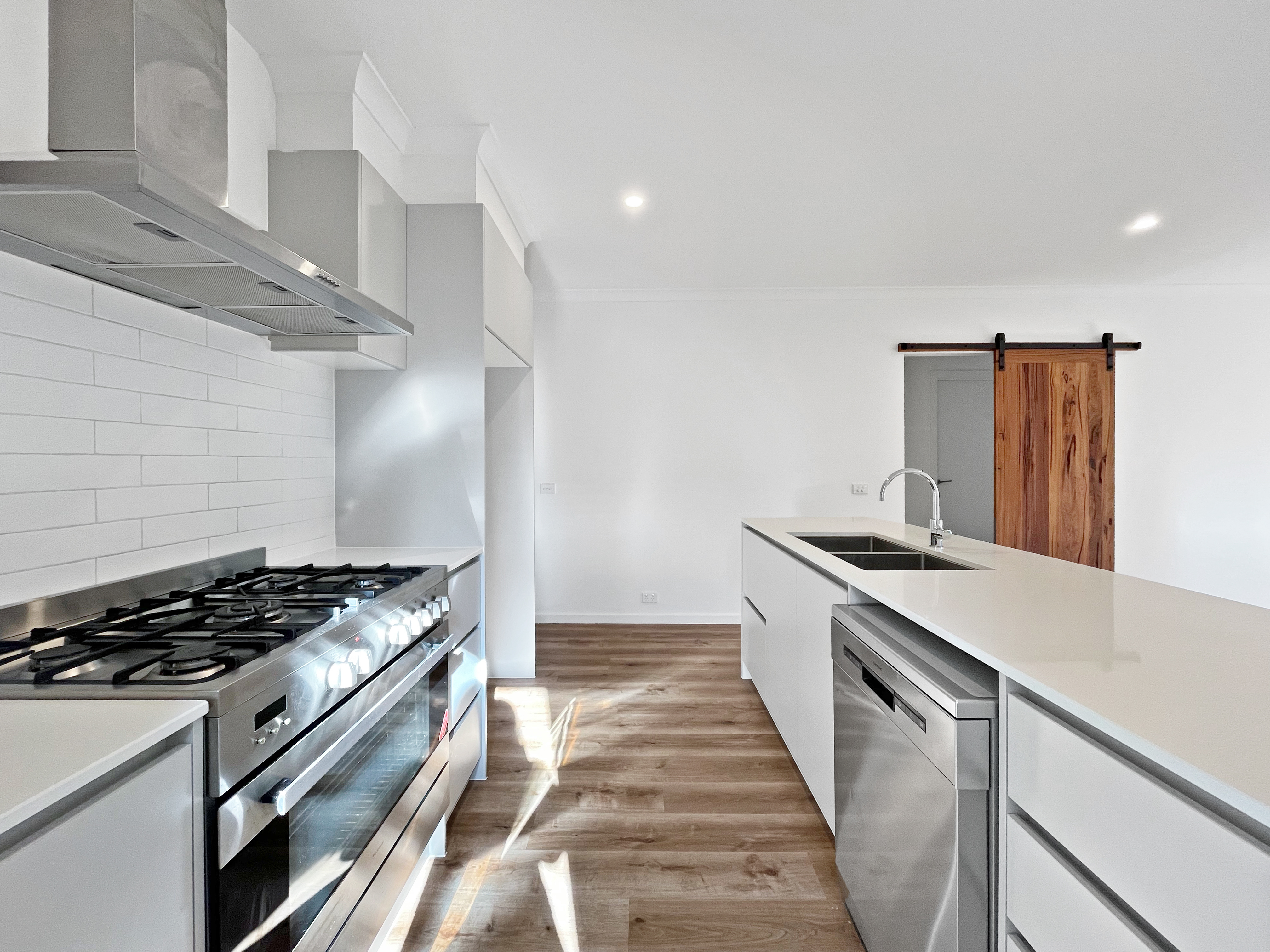 – Stylish modern kitchen with walk-in pantry, stone bench-tops, 900mm stainless steel oven and 5 burner gas cook-top, dishwasher, plenty of cupboard & drawers.