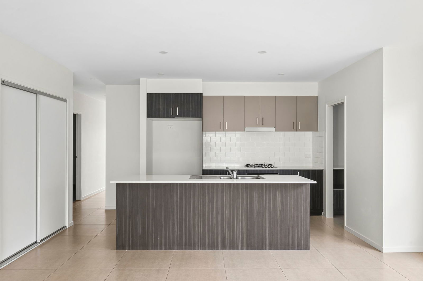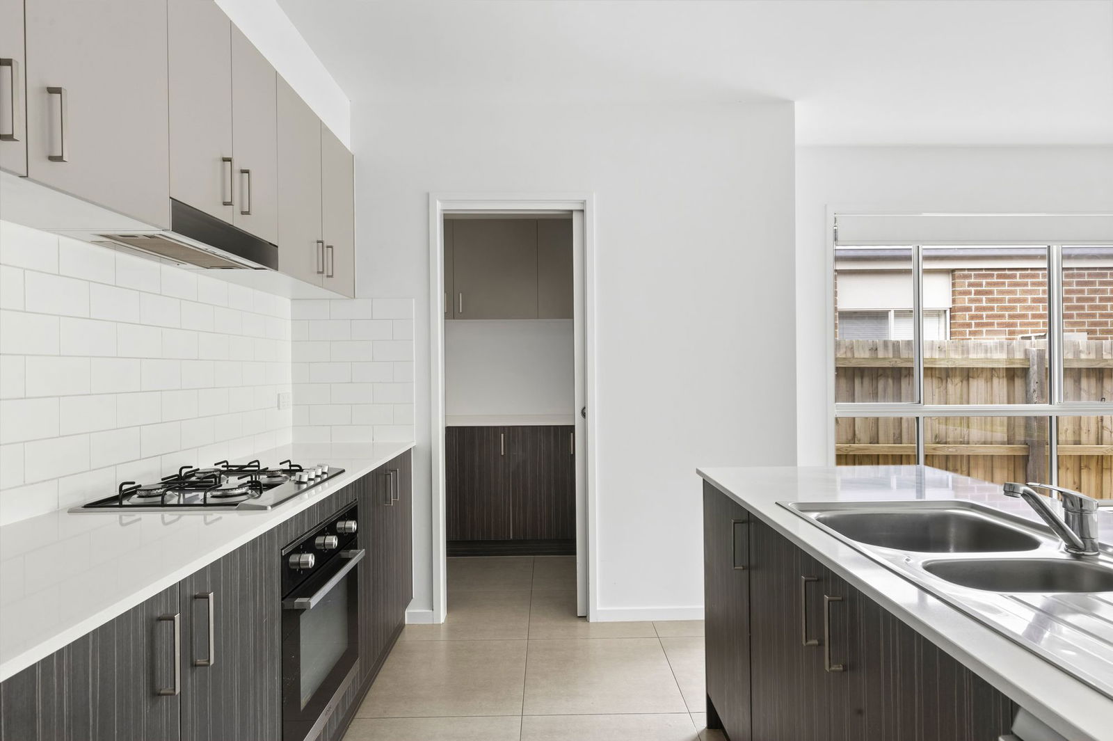 Tiled, 20mm stone benchtops throughout, 600mm integrated cooktop/oven/rangehood, dual stainless sink, overhead cabinetry, fridge cavity with plumbed tap, tiled splashback, high ceilings with square-set cornices, downlights, expansive walk in pantry complete with additional cabinetry & bench-space closed via cavity sliding door, additional linen storage off-set from kitchen with sliding doors