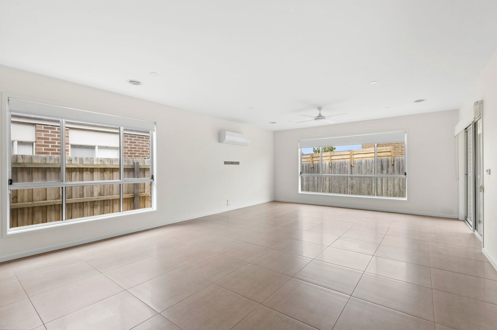 Open-plan living/dining, tiled flooring, downlights, high ceilings with square-set cornices, roller blinds, ducted heating, split-system heating & cooling, multiple power points, TV antenna point, ceiling fan, glass sliding doors to outdoor alfresco