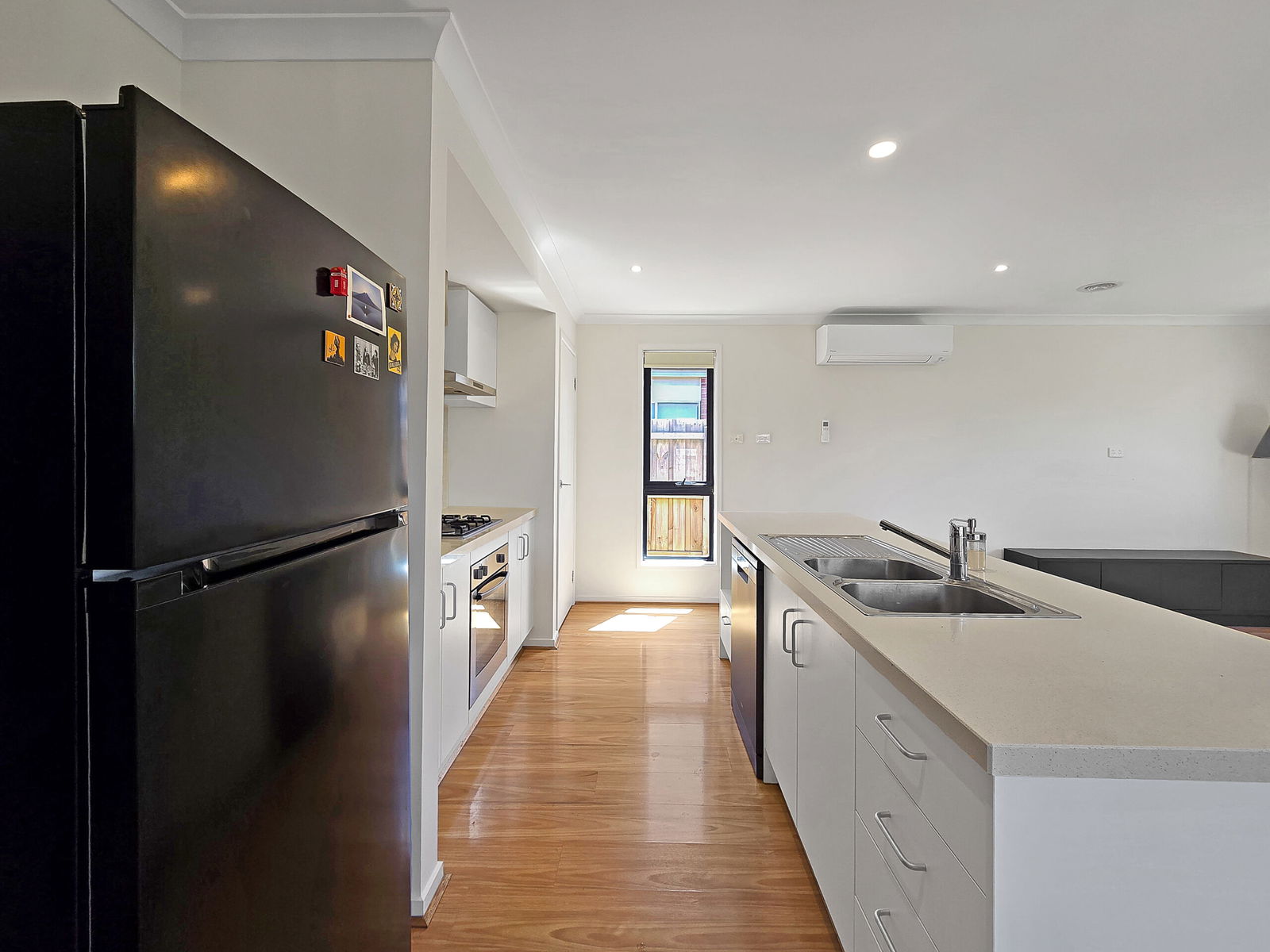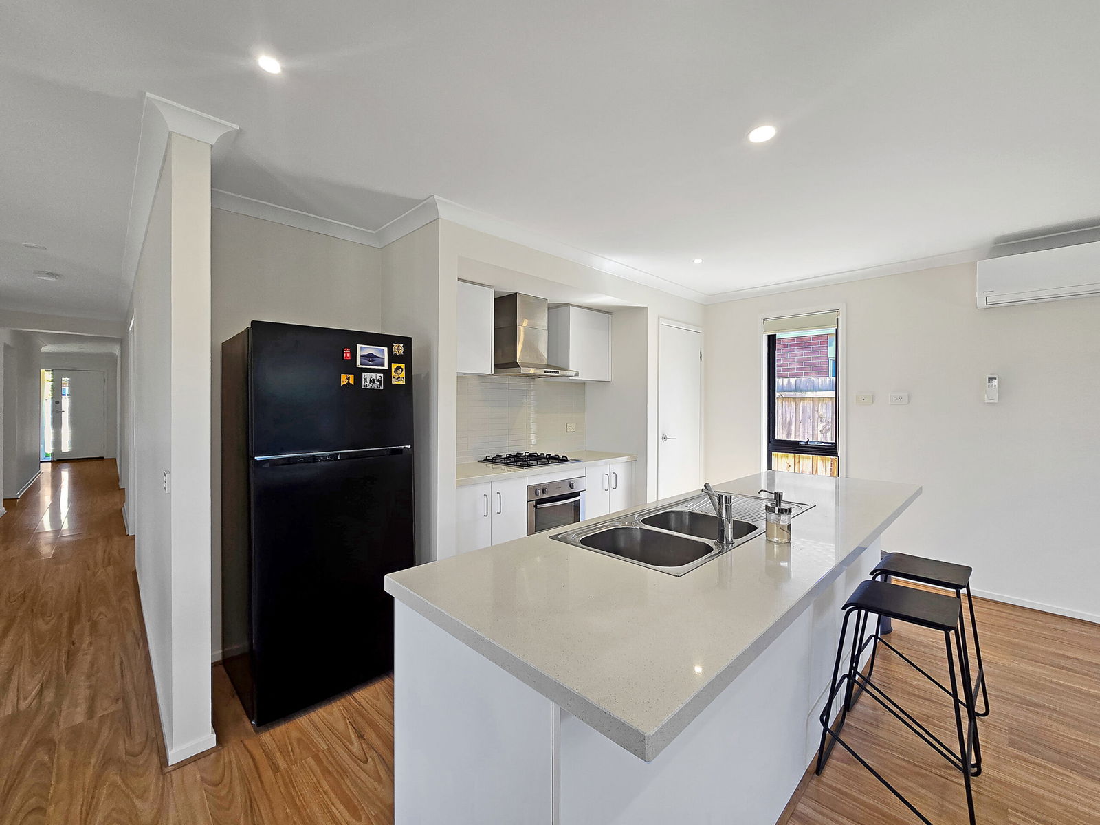Kitchen: 40mm stone benchtops and breakfast bar, dual sink with upgraded tapware, 600mm gas cooktop/oven & rangehood, subway ripple splashback, microwave cavity, fridge cavity, downlights, storage & overhead cabinetry, roller blinds & timber laminate flooring.