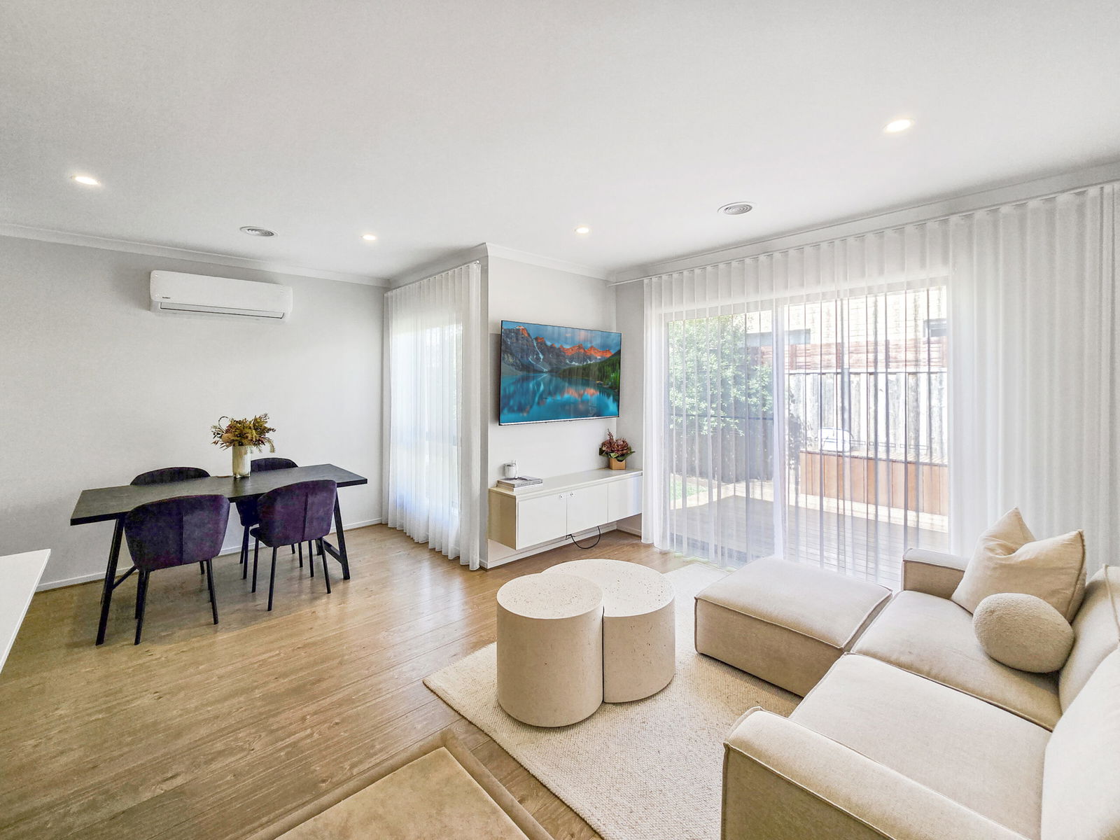 – Open plan kitchen, living and dining area with plenty of natural light and split system unit