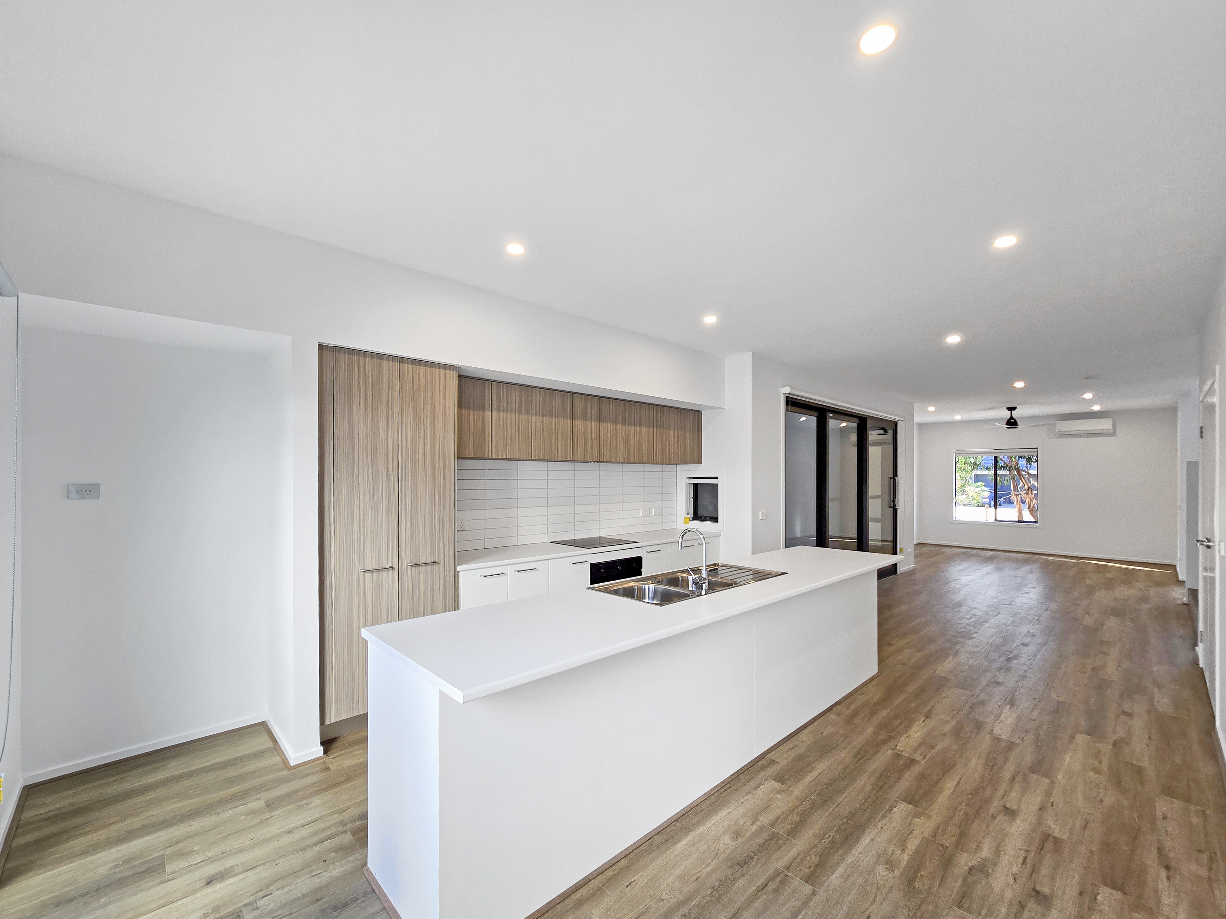 – Open plan kitchen, living and dining area with plenty of natural light, including a split system air conditioning and a ceiling fan