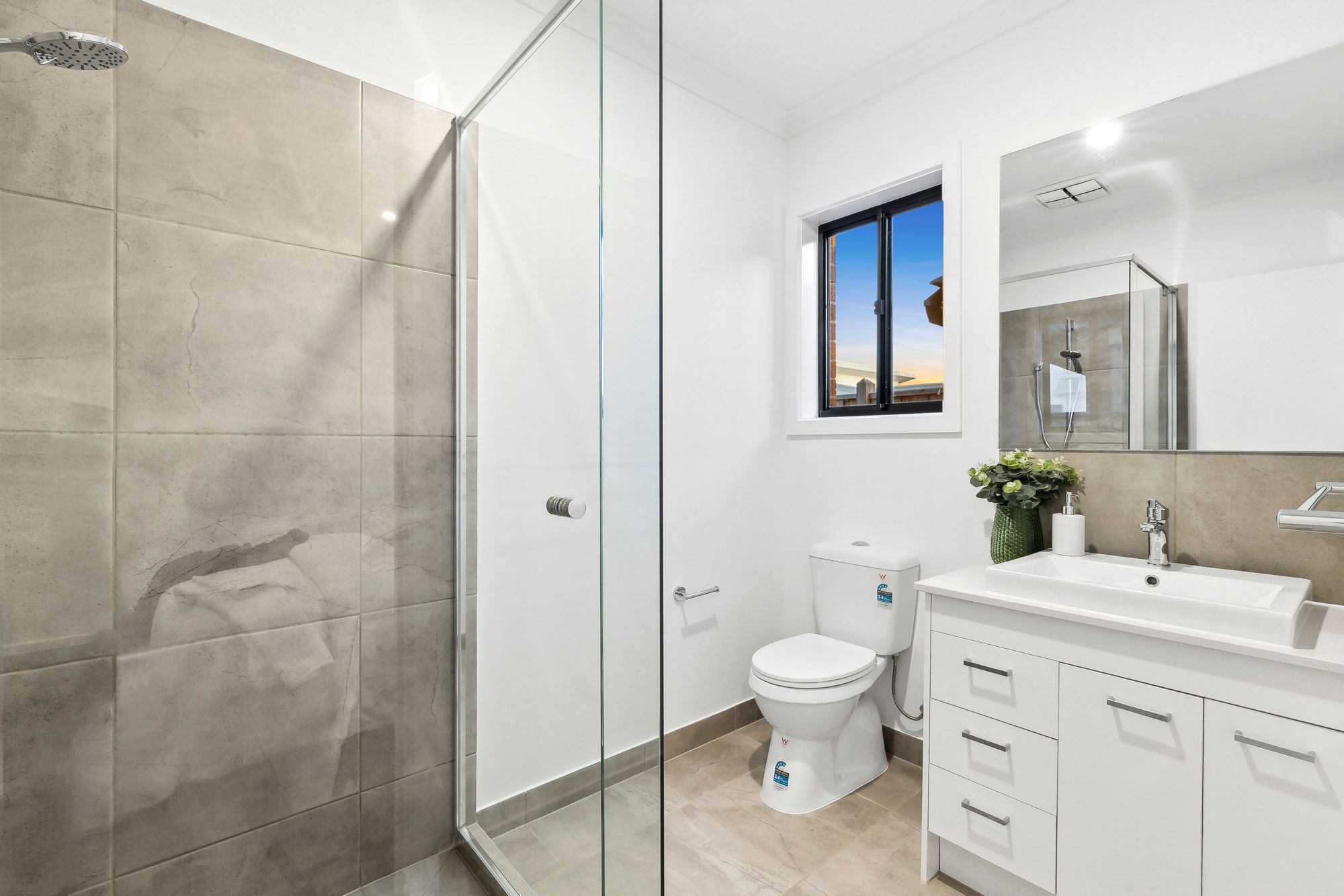 – a neat ensuite that adds a touch of luxury to your daily routine. including a tiled shower base, 20mm stone benchtop, and single vanity with ample storage.