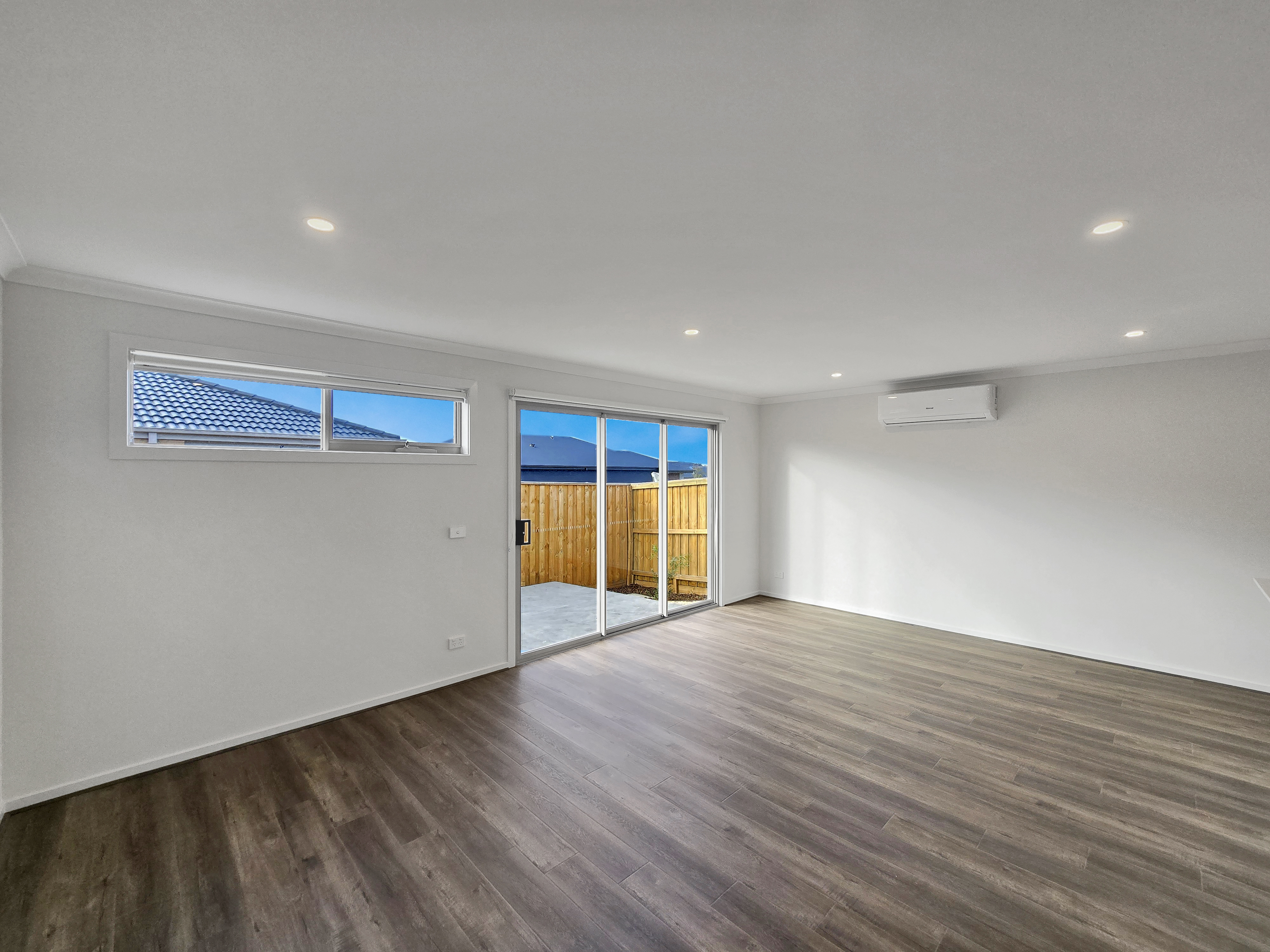 – Large, light and bright, open plan living area with a split system