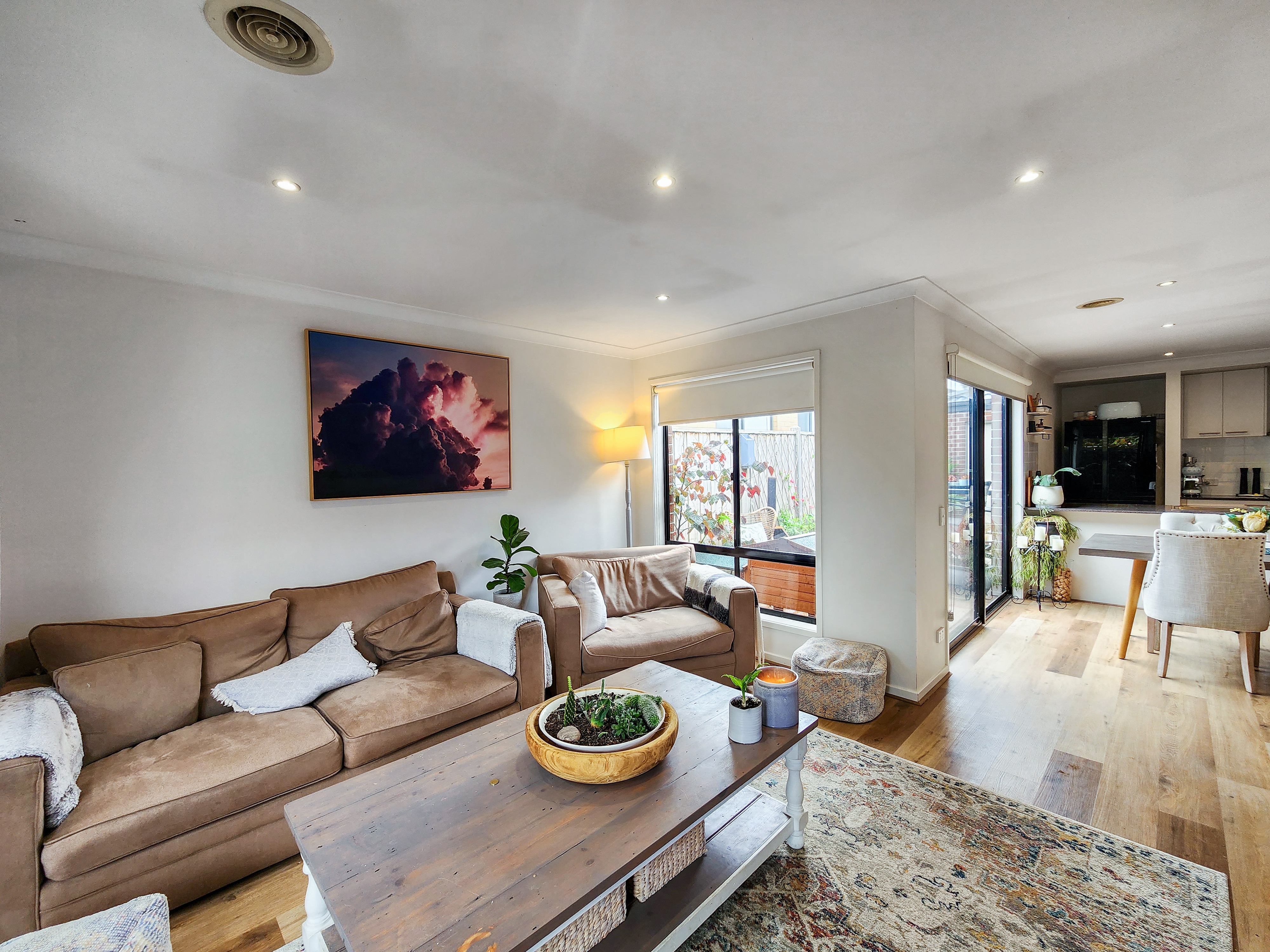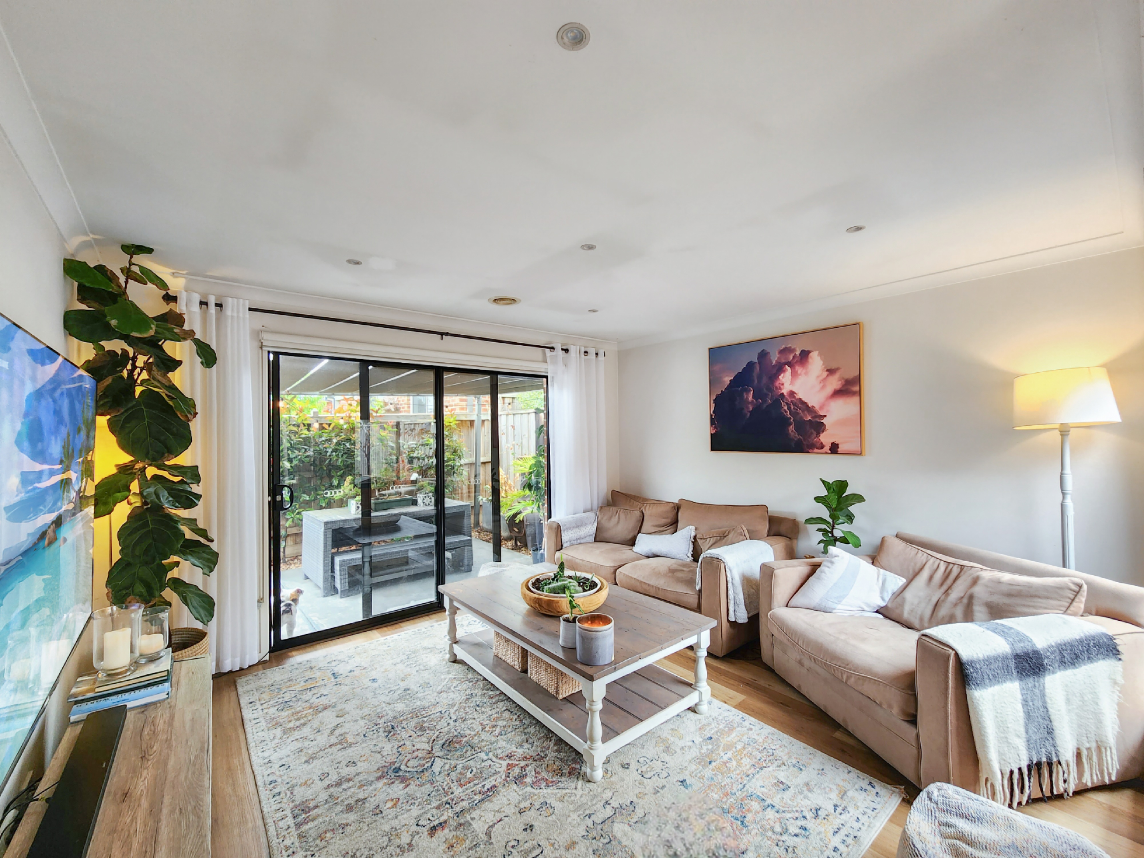 – Spacious living room off the dining area opens into the low maintenance backyard with and undercover alfresco area & grass patch – additional access through a sliding door from the dining area, to a decked area, perfect for outdoor furniture