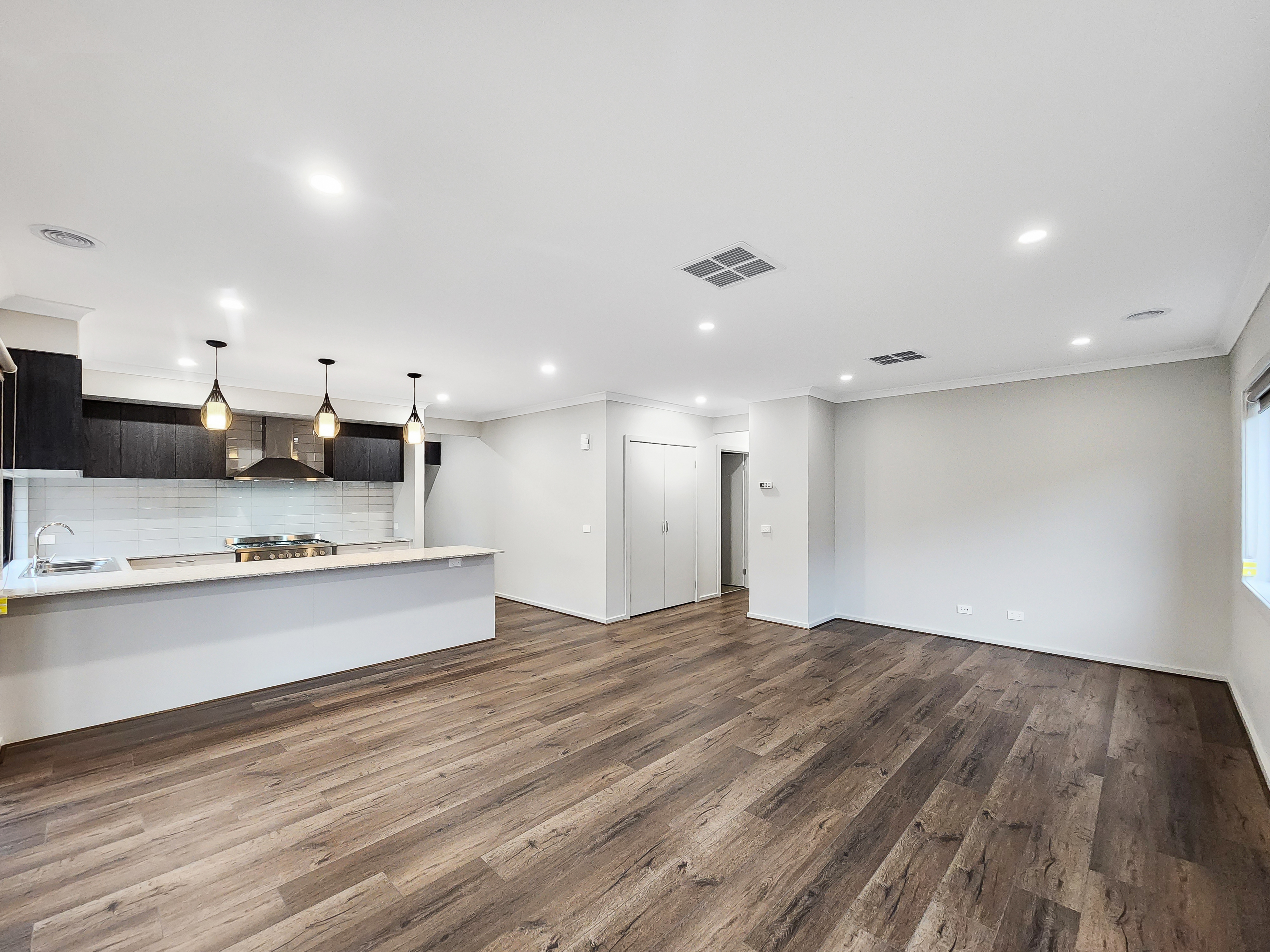 – Large open plan living at the rear of the home with down lights throughout