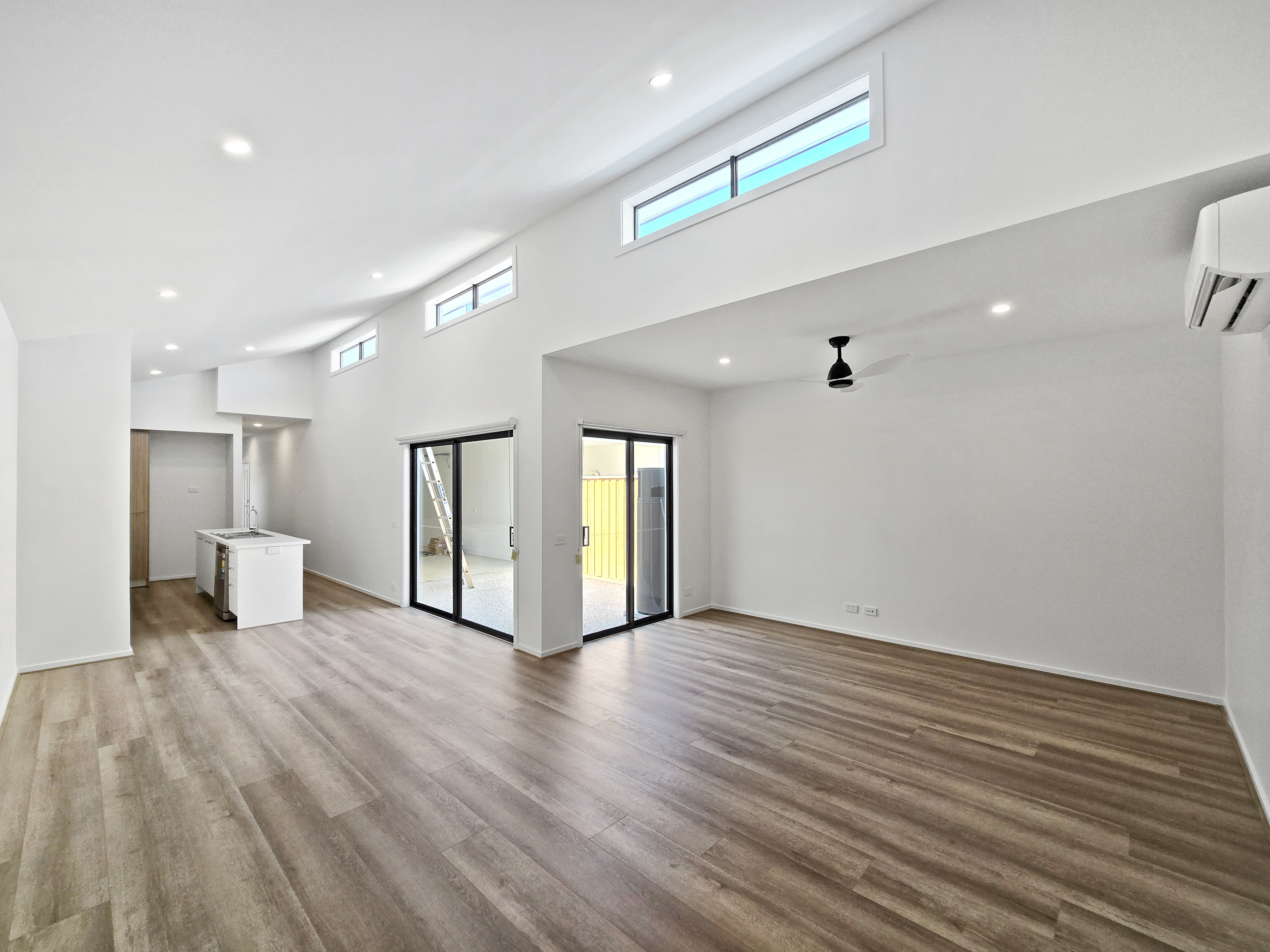 – Light and bright open plan living area with a stunning raked ceiling, split system & external access to backyard