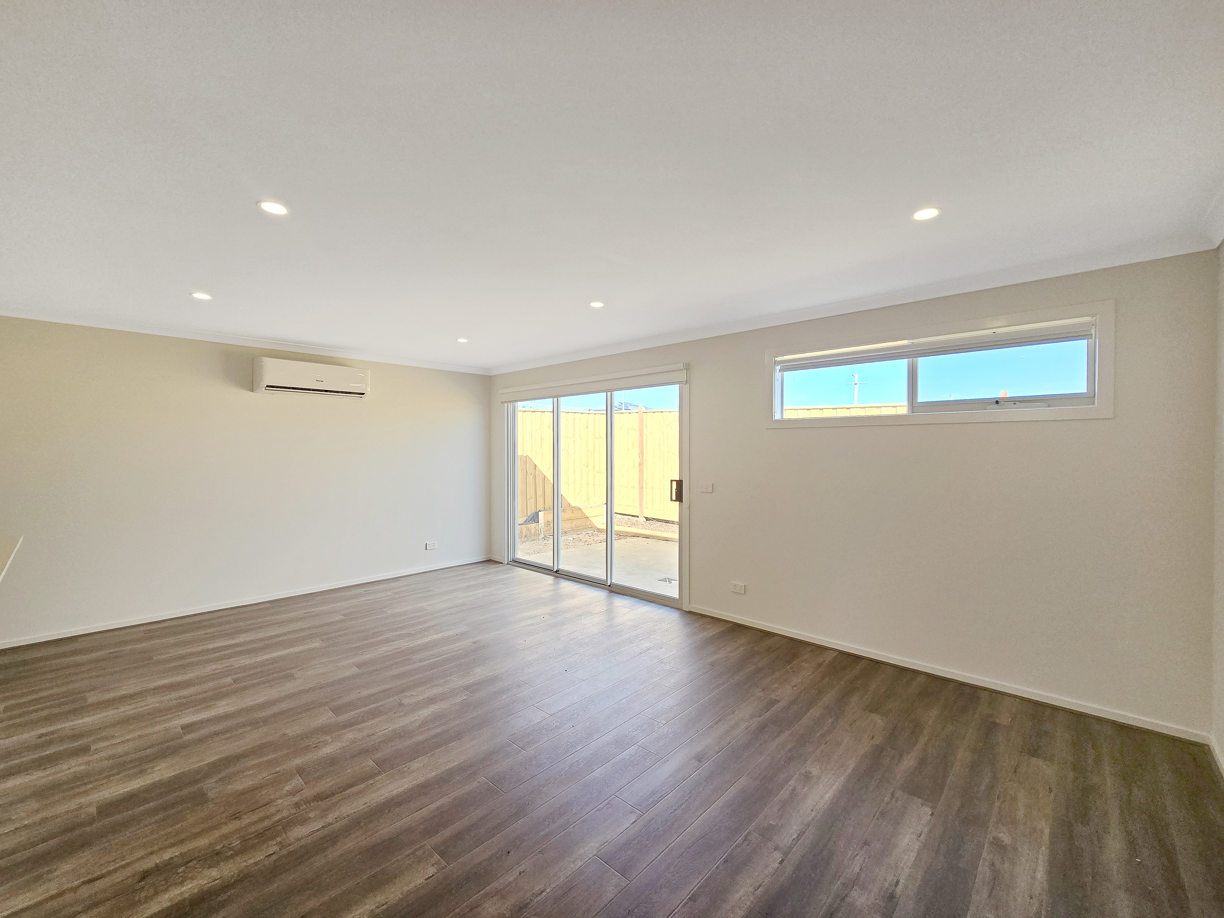– Large, light and bright, open plan living area with a split system
