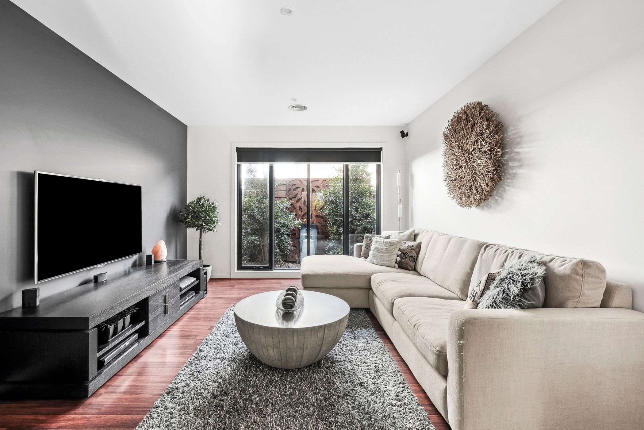 Secondary Lounge: Feature wall colour, garden views, roller blinds, opening to an adjoining third living that doubles as a great home office with built-in desk.